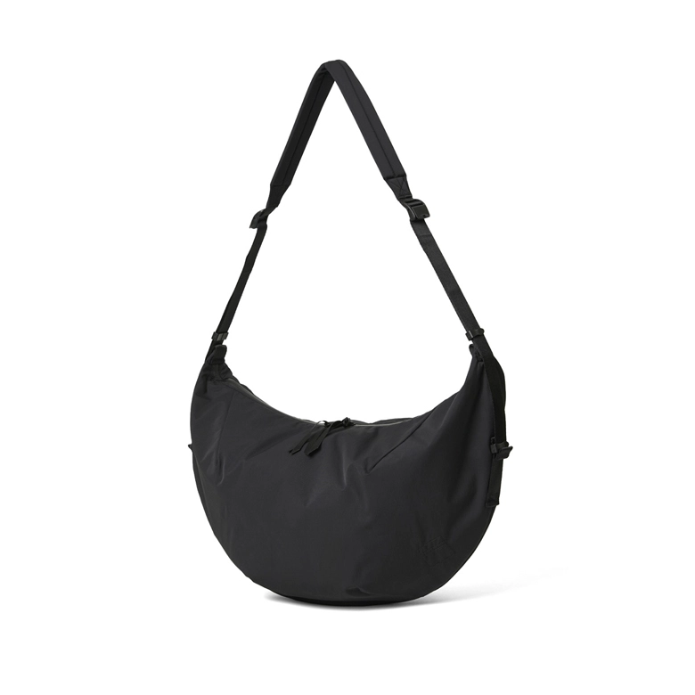 美しい三日月型の造形が特長のショルダーバッグで、その形状から着用者への優れたフィット感をもたらす。開閉部には止水ジップを施すことで、軽い雨天下であれば防水性も発揮。ハーネスは両サイドから調整することが可能。また調整によって余った部分をホールドできるクリップを備え、使用時の審美性を高めるなど細部へのこだわりが光るアイテム。均整の取れたデザインにより前後問わず、直感的な使用が可能となっている。