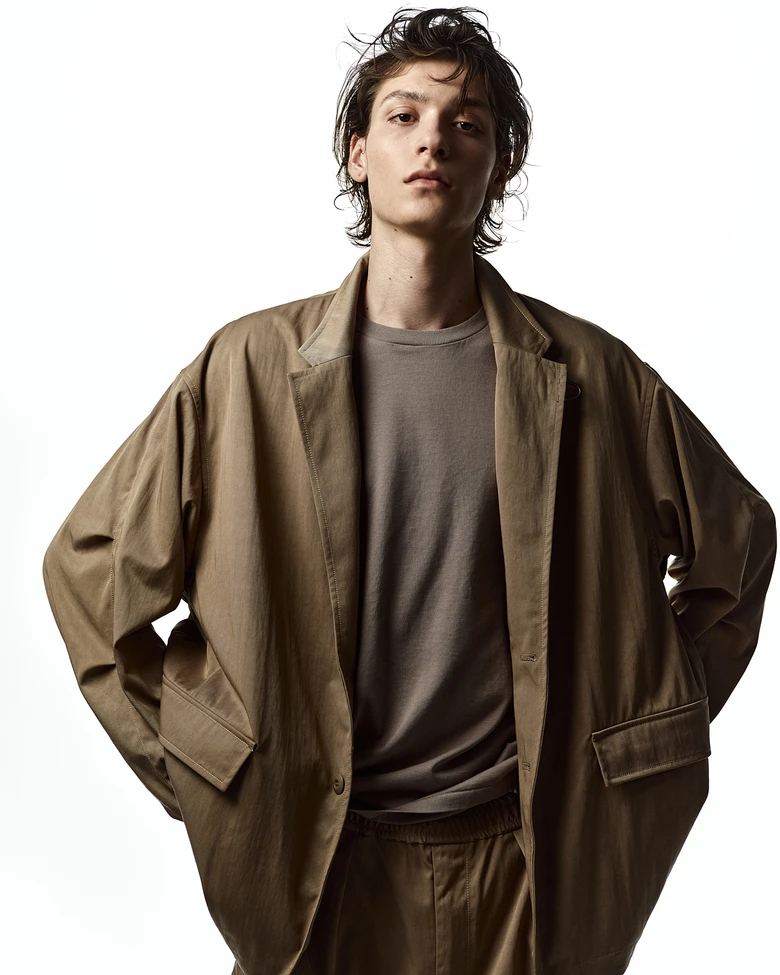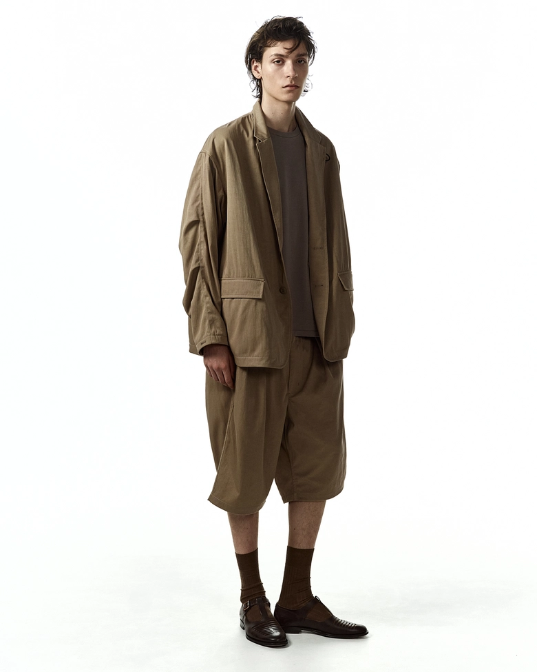 オーバーサイズシルエットにメッシュの総裏ライニングを採用したスポーティーな2Bジャケット。ハンティングジャケットから着想を得た、大きくデザインされたフラップポケットが特徴的なアクセントになっている。ジャケット内側には大小さまざまなポケットを配置し、優れた収納力を実現。さらに、ミリタリーディテールを取り入れた前振りの袖や、腕の可動域を広げ袖口の調整が可能なアクションプリーツなど、<DAIWA PIER39>ならではのデザインワークが光る一着。