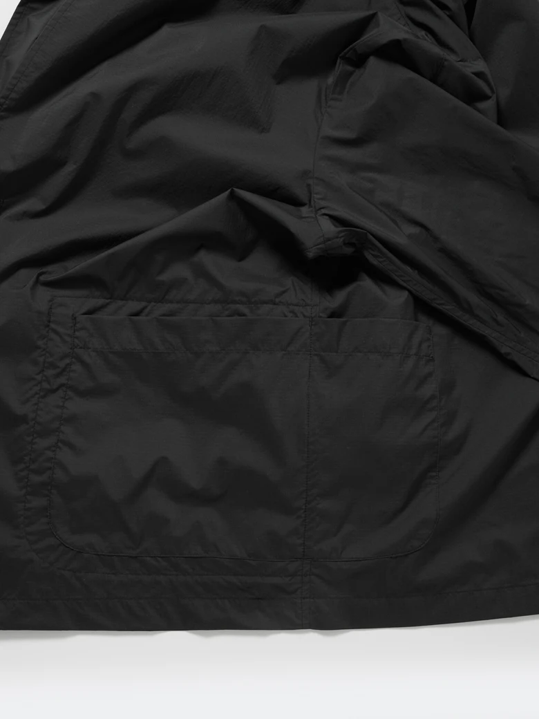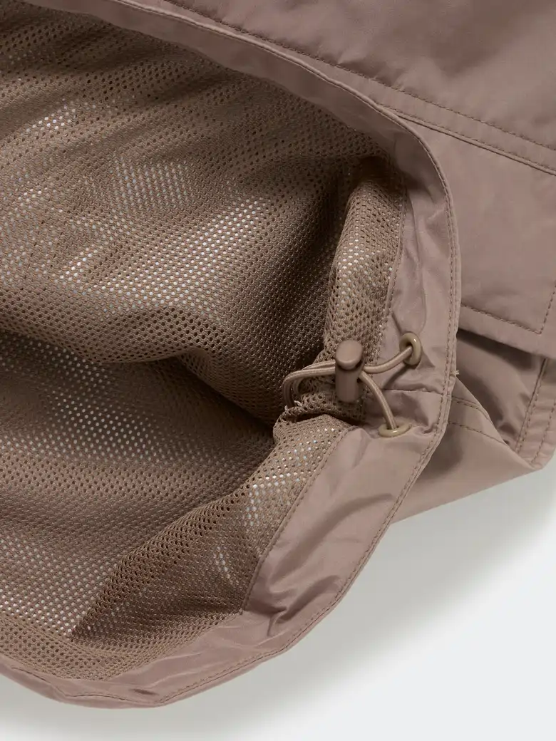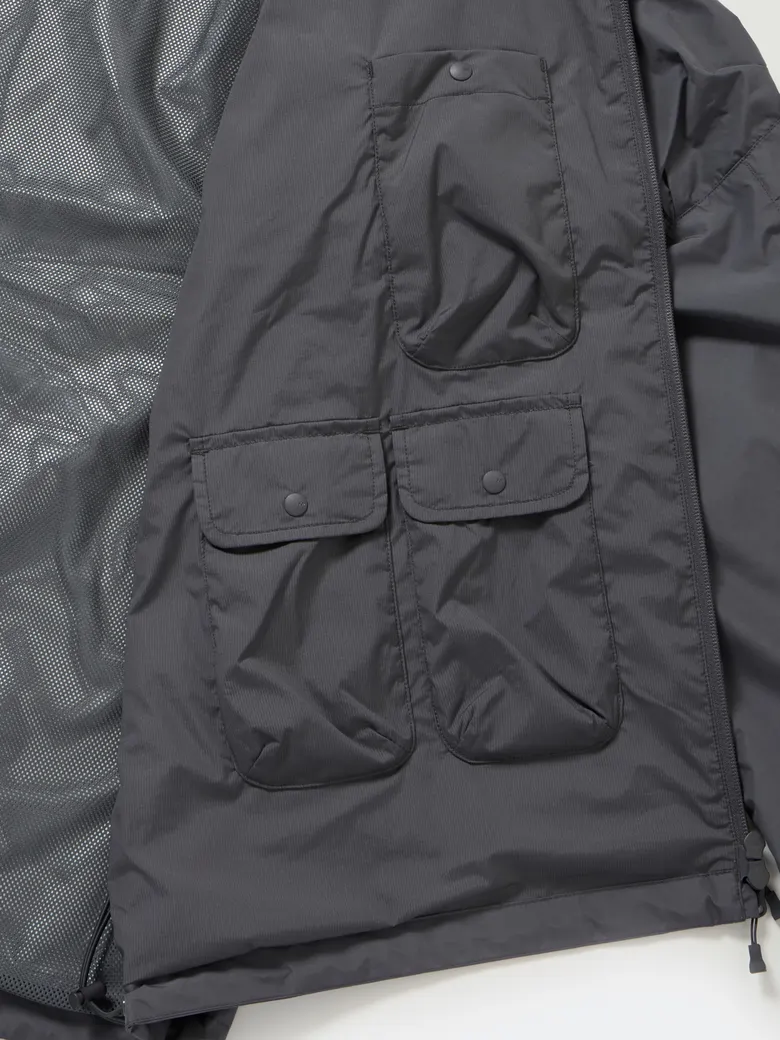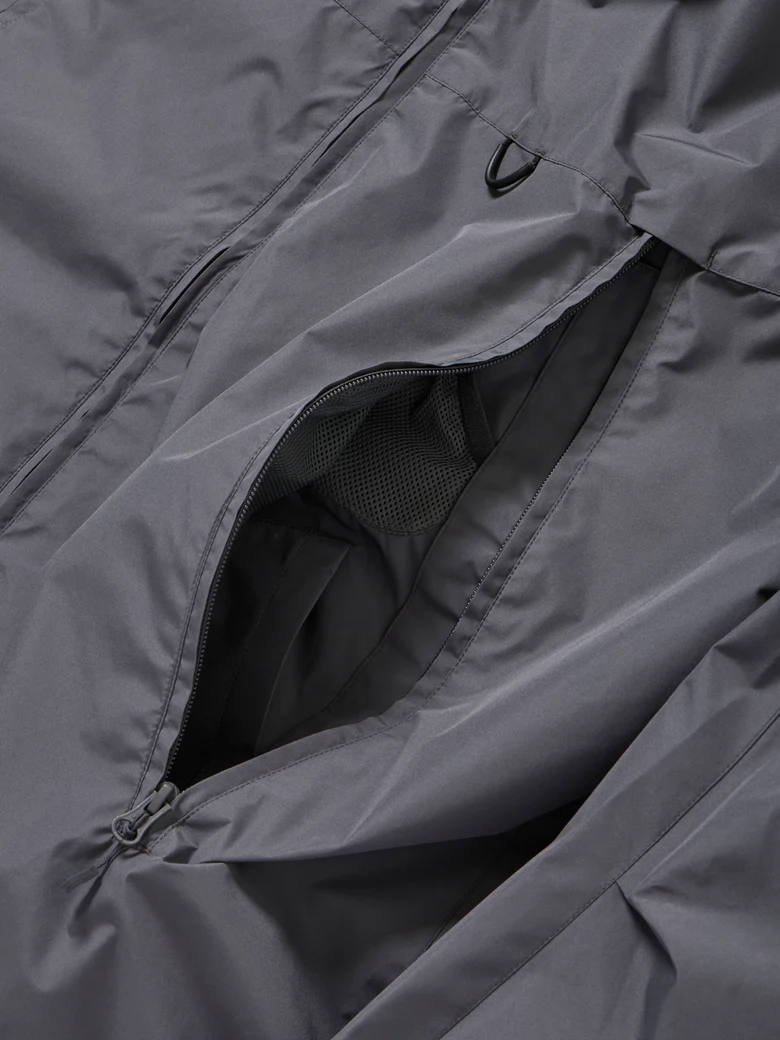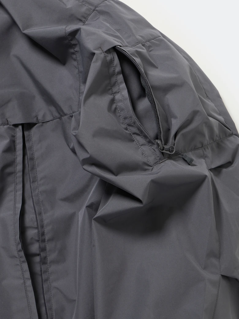 アメリカ軍のレイヤリングシステムからインスピレーションを得たシェルジャケット。フロントの大きな機能的ポケットや両袖のマルチポケットを備え、シンプルながら高い収納力を実現。さらに、内側にも多彩なマルチポケットを配置し、〈DAIWA PIER39〉ならではの実用的なアクセントをプラス。ミリタリーディテールを活かした前振りの袖や、腕の可動域を広げ袖口の調整が可能なアクションプリーツなど、クリエイティブなデザインワークも特徴的。