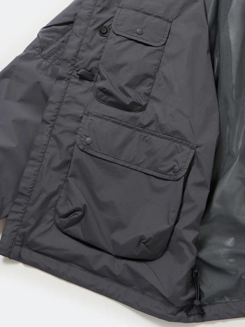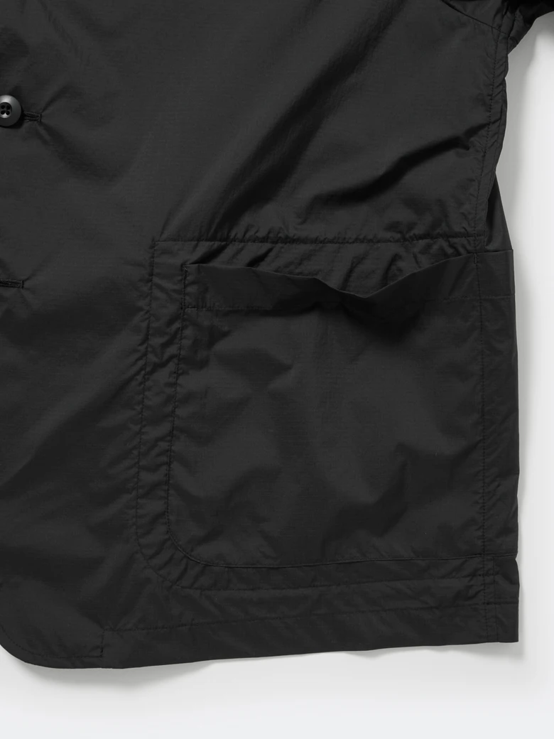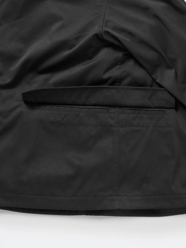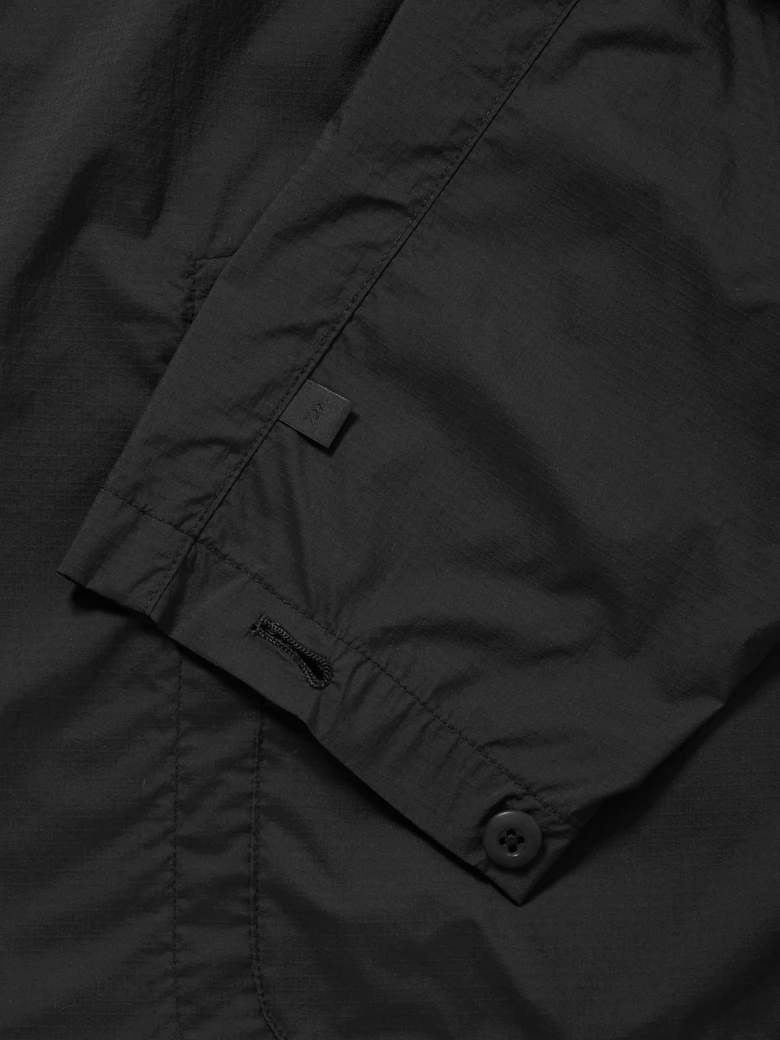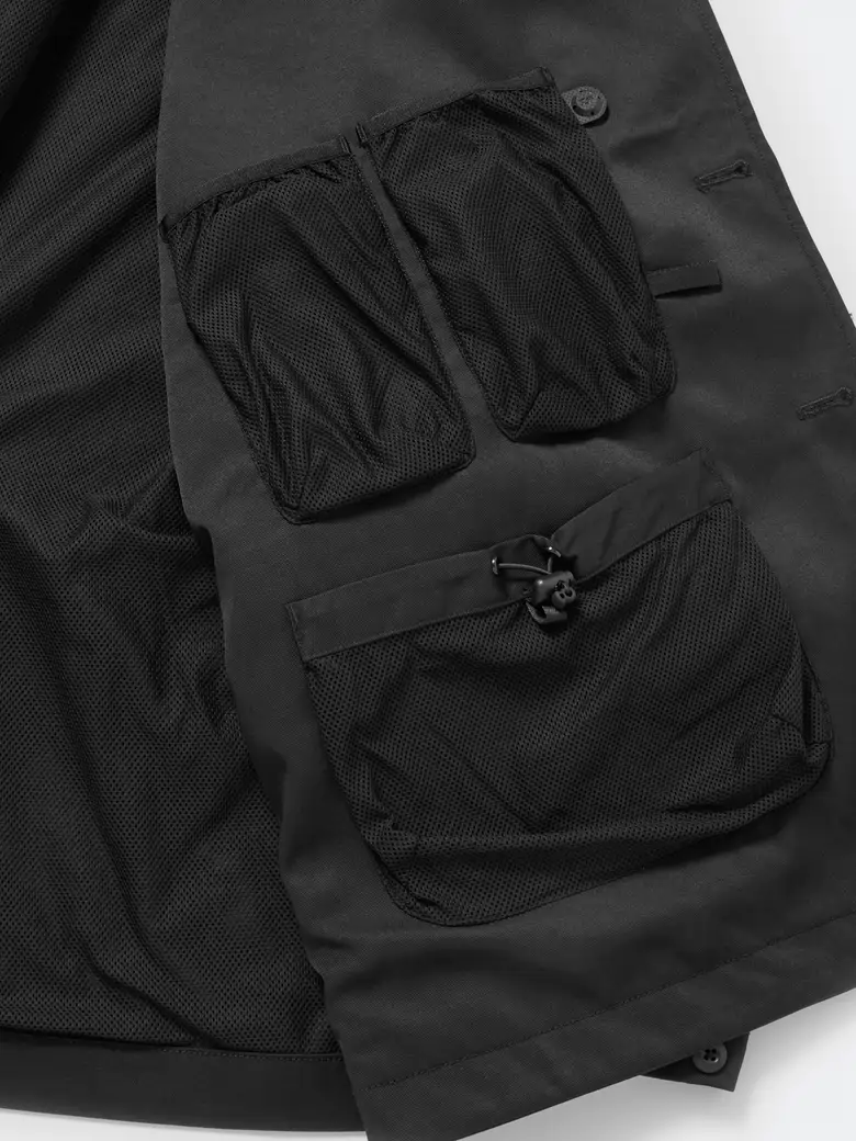 アメリカ軍のレイヤリングシステムからインスピレーションを得たシェルジャケット。フロントの大きな機能的ポケットや両袖のマルチポケットを備え、シンプルながら高い収納力を実現。さらに、内側にも多彩なマルチポケットを配置し、〈DAIWA PIER39〉ならではの実用的なアクセントをプラス。ミリタリーディテールを活かした前振りの袖や、腕の可動域を広げ袖口の調整が可能なアクションプリーツなど、クリエイティブなデザインワークも特徴的。