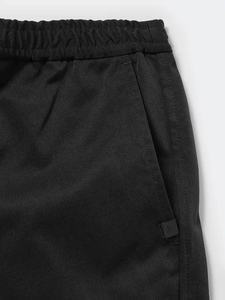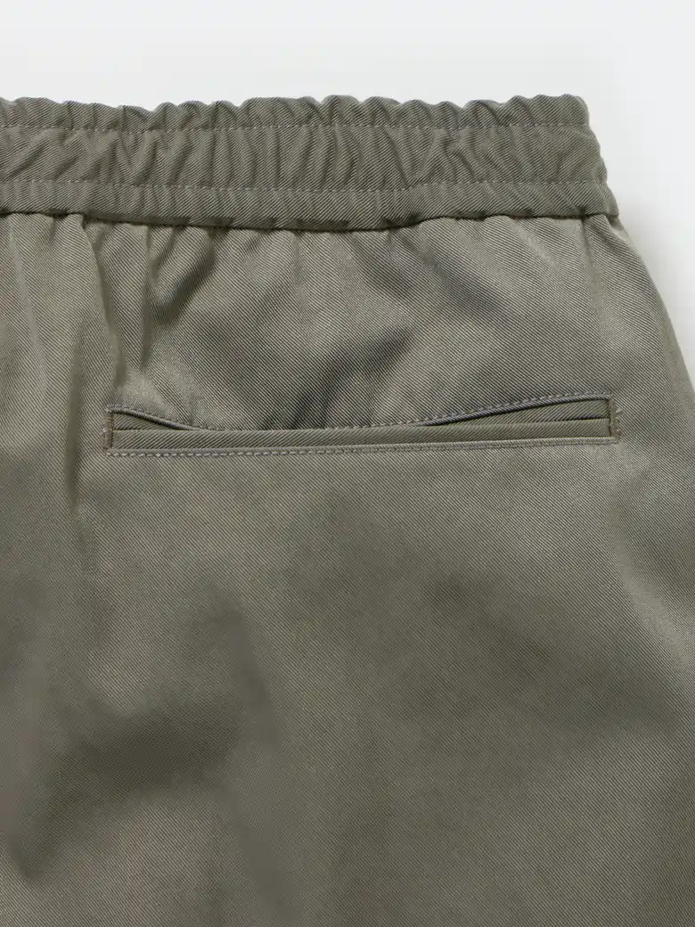 アメリカントラディショナルスタイルの定番であるプレーンフロントトラウザーズをスポーティーにアレンジ。素材の特徴に加え、ウエストと裾にドローコードを配することで、アクティブに動きやすい仕様に仕上げている。