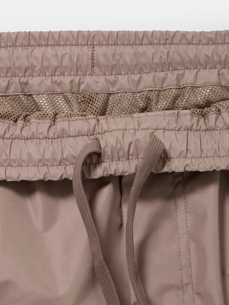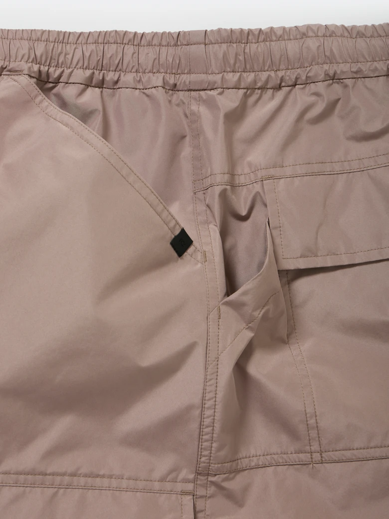 90年代のアウトドアデザインにインスパイアされたシンプルなイージーパンツ。右のバックポケットを裏返せばパッカブル仕様になり、持ち運びに便利。裾にはドローコードを備え、シーンに応じたスタイリングの調整が可能。同シリーズの「TECH TRAVEL series(TECH TRAVEL 2B JACKET / BJ-62025)」とセットアップでの着用もできる。