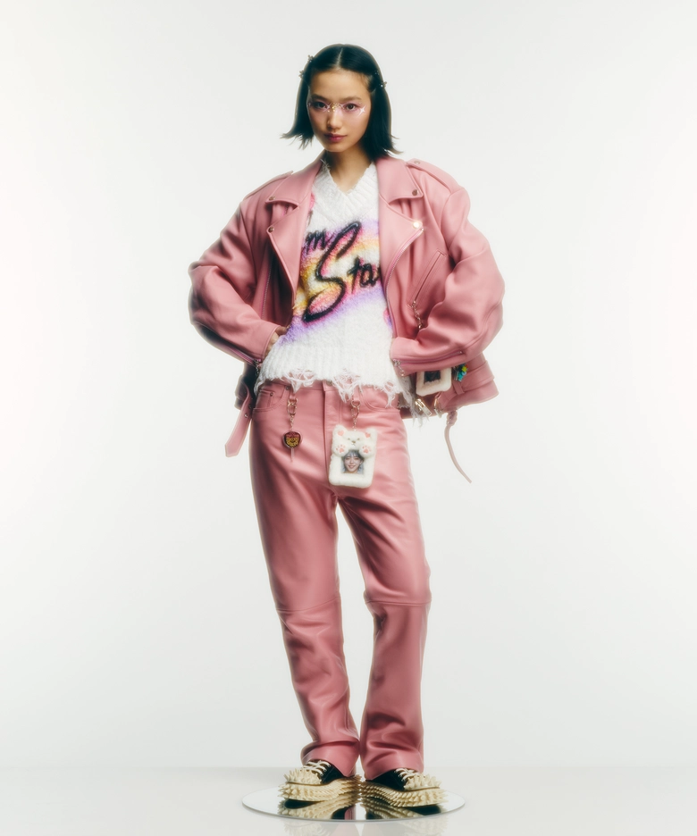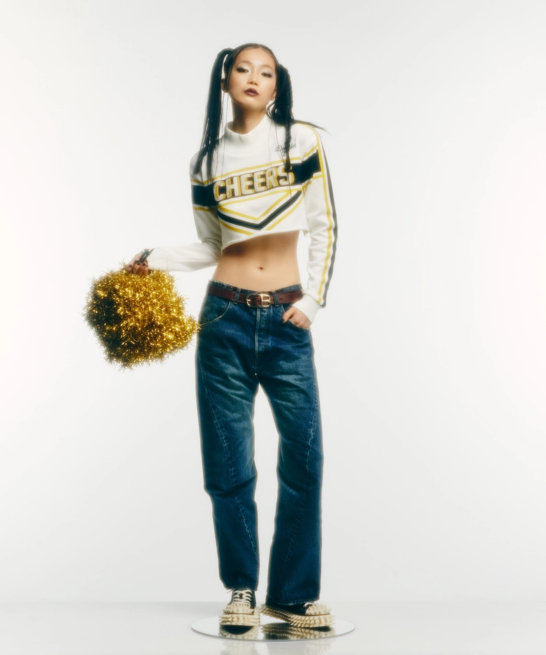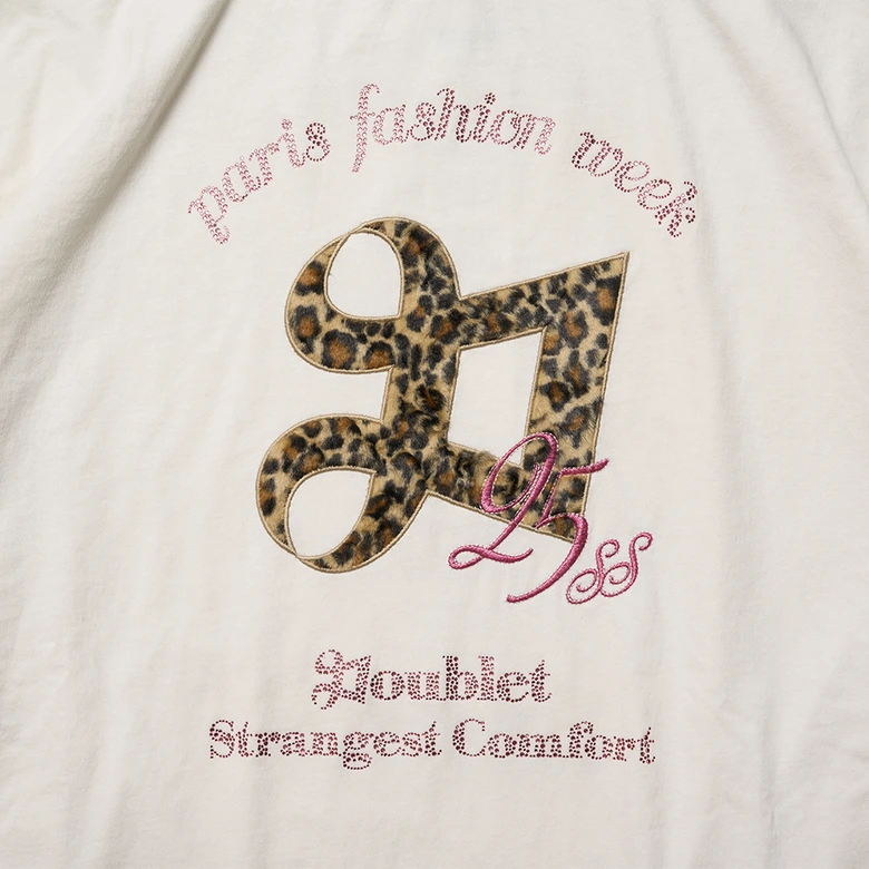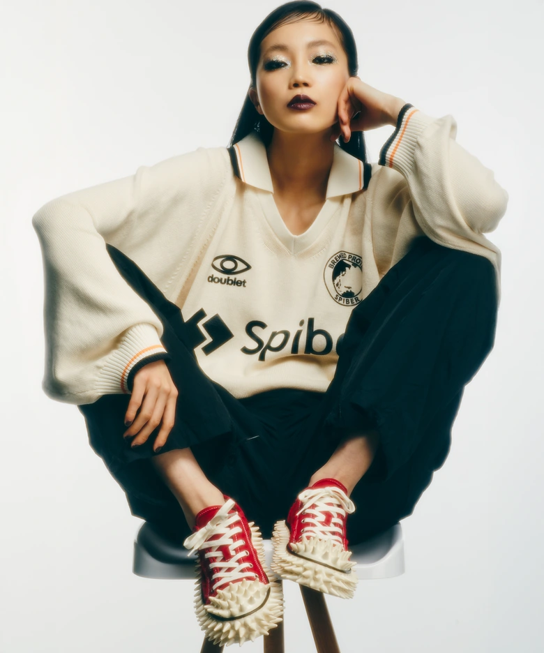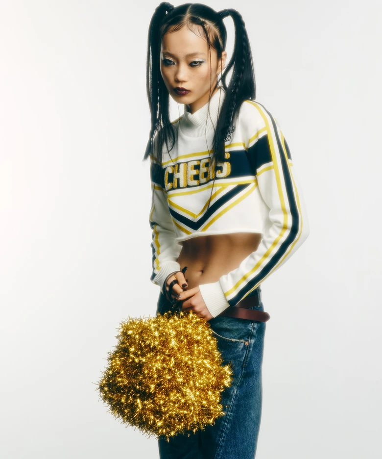 <doublet(ダブレット)>の2025春夏コレクションは、応援団やチアリーダーのスタイルからインスピレーションを得たアイテムや、推し活に欠かせないうちわやペンライトを取り入れたユーモアあふれるデザインが特徴だ。