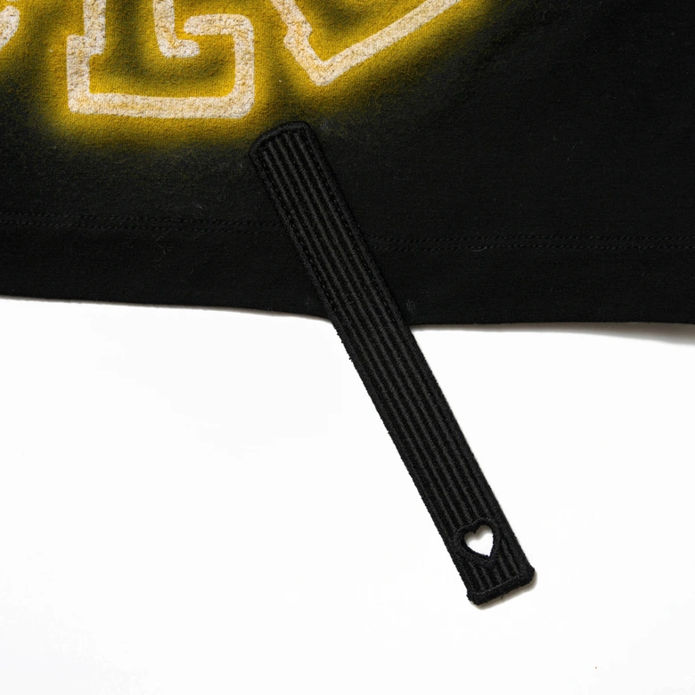 パリファッションウィークで発表された過去のコレクションテーマを背中にプリント。ヴィンテージ感のあるデザイン。