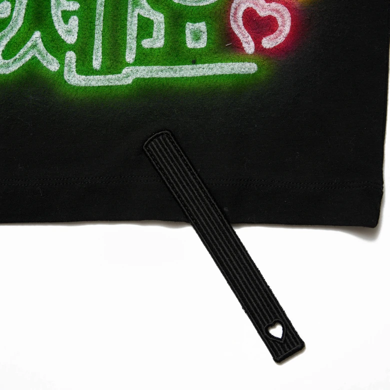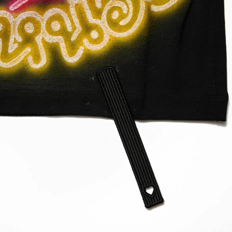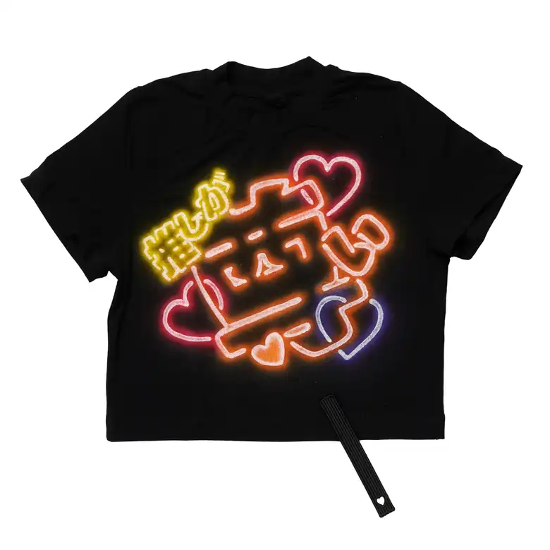 ファンサうちわをイメージしたTシャツ。うちわの柄部分を刺繍で表現し、エアブラシ加工が施されている。