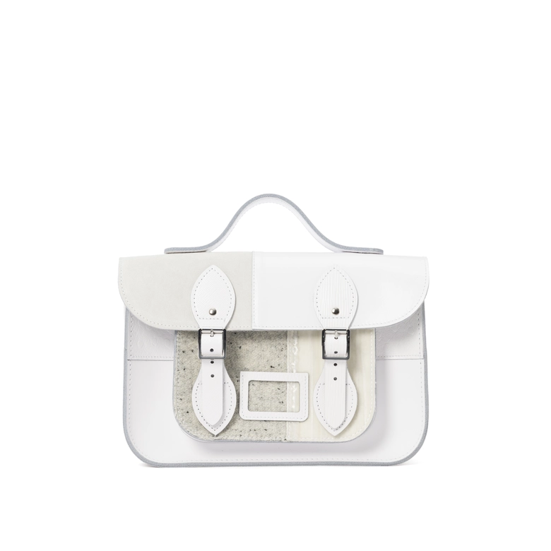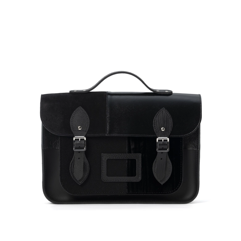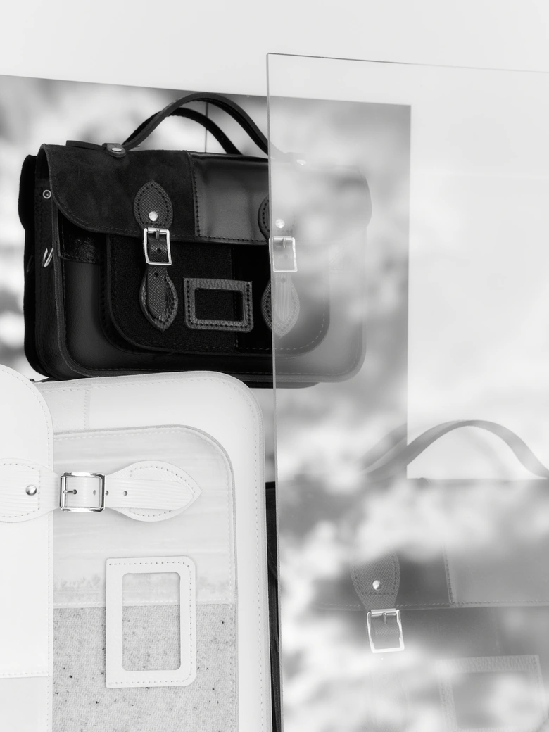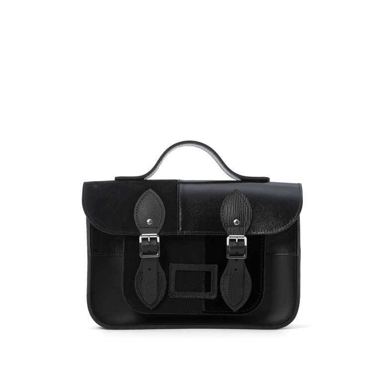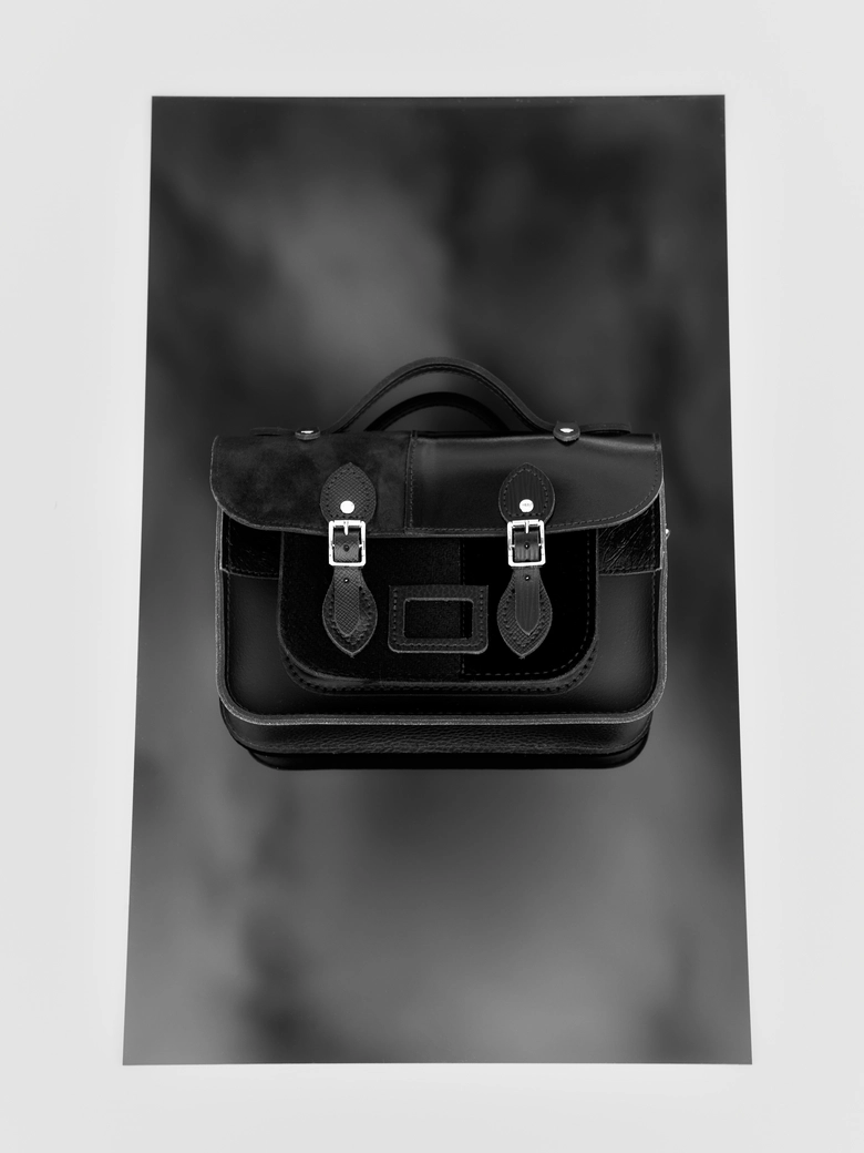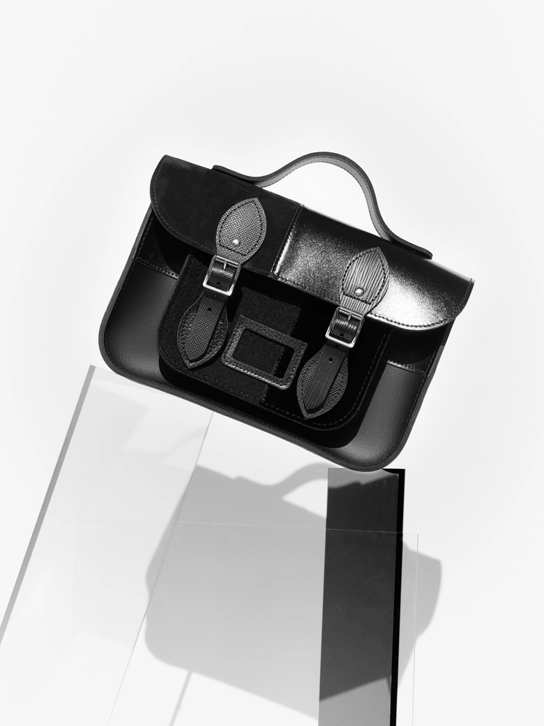 伝統的な学生カバン「サッチェルバッグ」のデザインをベースに、持ち手を加えたシグネチャースタイル「バッチェルバッグ」として展開。イギリス・ミッドランドの工房で熟練の職人によってハンドメイドされたアイテムは、THE 13 INCH、THE 11 INCH、THE MINIの3サイズでラインナップ。レザー、ウール、ベルベット素材をパッチワークで組み合わせたモノトーン仕様で、クラシックながらも洗練されたデザインが特徴だ。