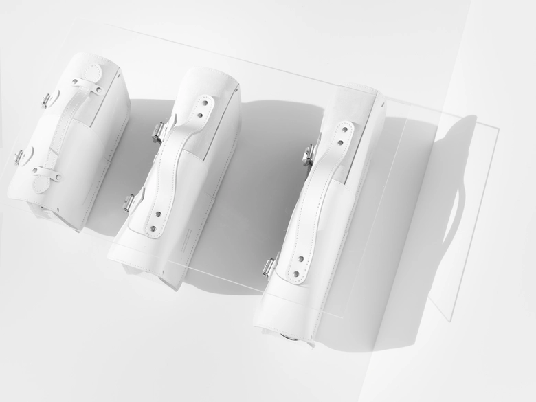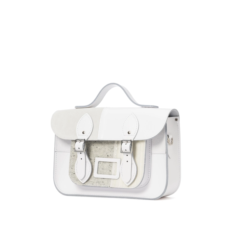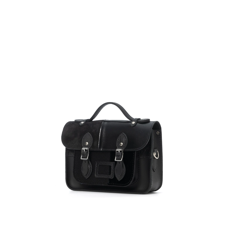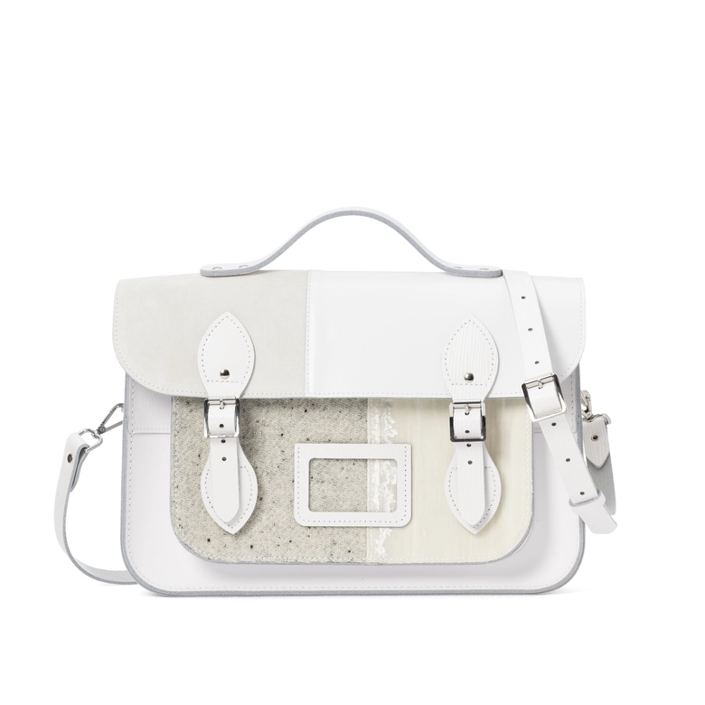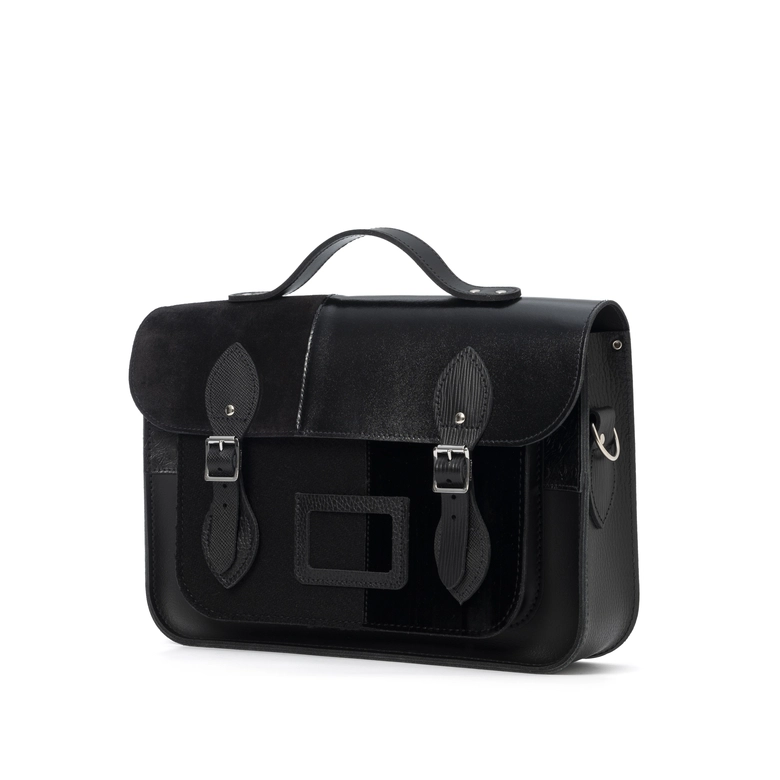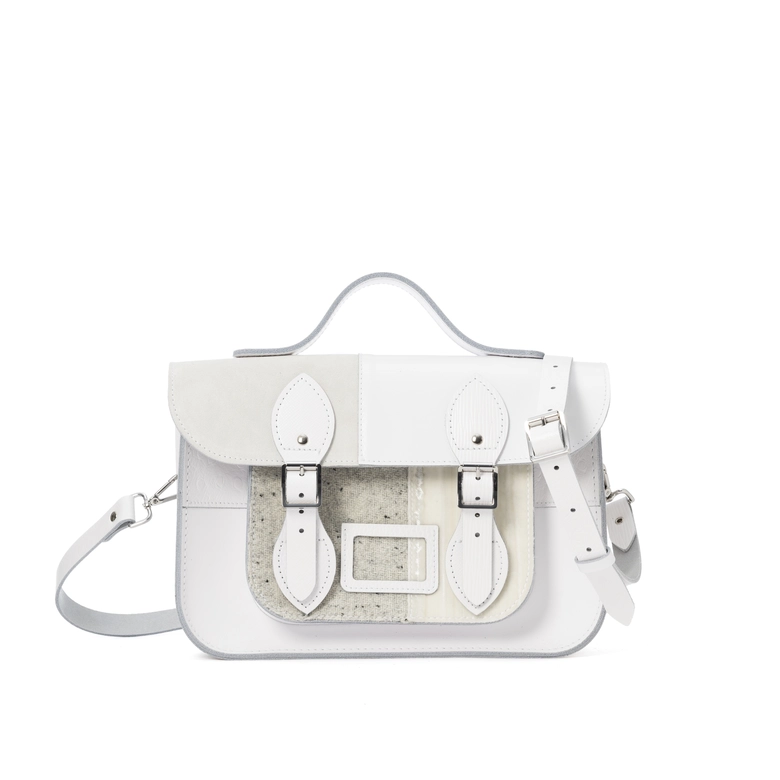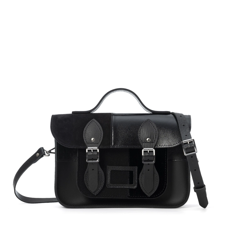 伝統的な学生カバン「サッチェルバッグ」のデザインをベースに、持ち手を加えたシグネチャースタイル「バッチェルバッグ」として展開。イギリス・ミッドランドの工房で熟練の職人によってハンドメイドされたアイテムは、THE 13 INCH、THE 11 INCH、THE MINIの3サイズでラインナップ。レザー、ウール、ベルベット素材をパッチワークで組み合わせたモノトーン仕様で、クラシックながらも洗練されたデザインが特徴だ。