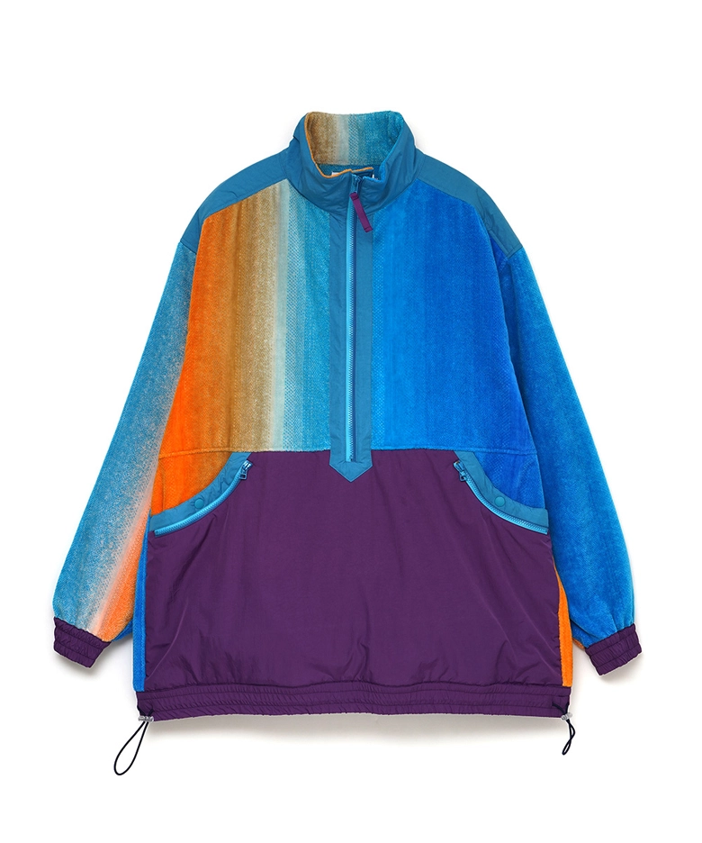 今回のコラボレーションでは、今治タオルとの協業により生まれたブランケット素材を採用。丁寧に染色した糸を極厚に織り上げた後、表面のみパイルをカットし、ベルベットのような質感に仕上げた。