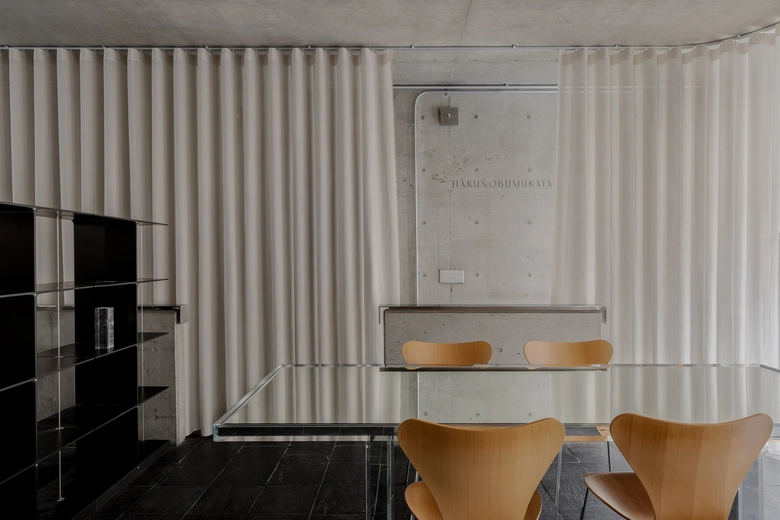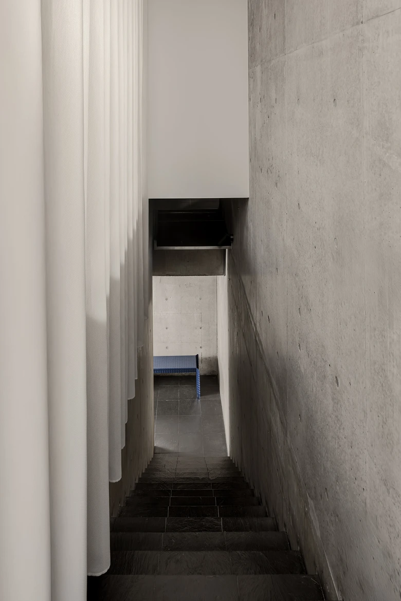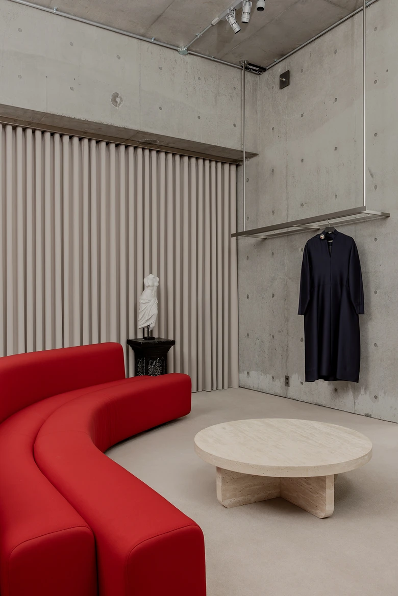 閑静な住宅街に佇むこの新ブティックは、世界的建築家・磯崎新氏による1970年代の貴重な建築をリノベーション。1階をアトリエ、地下1階を予約制のプライベートブティックとして再構築した。