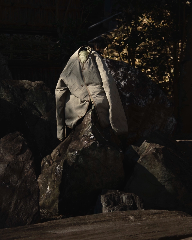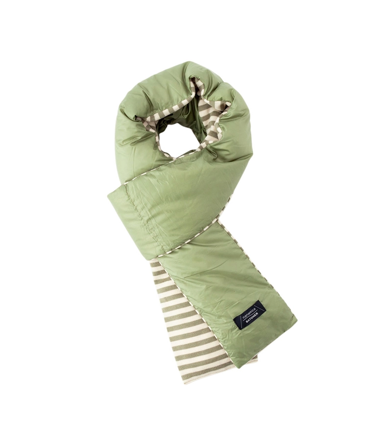 ダウンカーディガンとダウンマフラーは、表地の編み立てをBATONERへ依頼し、その表地を使用してナナミカが生産している。<nanamica>のスタンダードアイテムであるカーディガンとマフラーにニットの持つ柔らかな雰囲気が相まって暖かみの感じられるアイテムに。