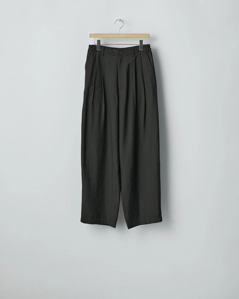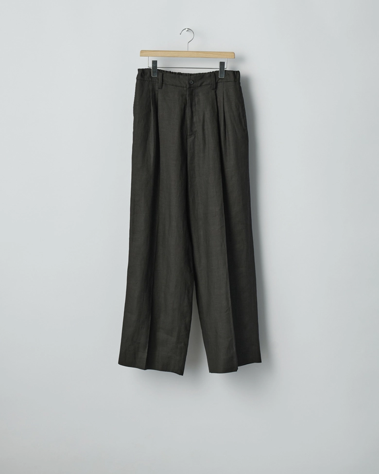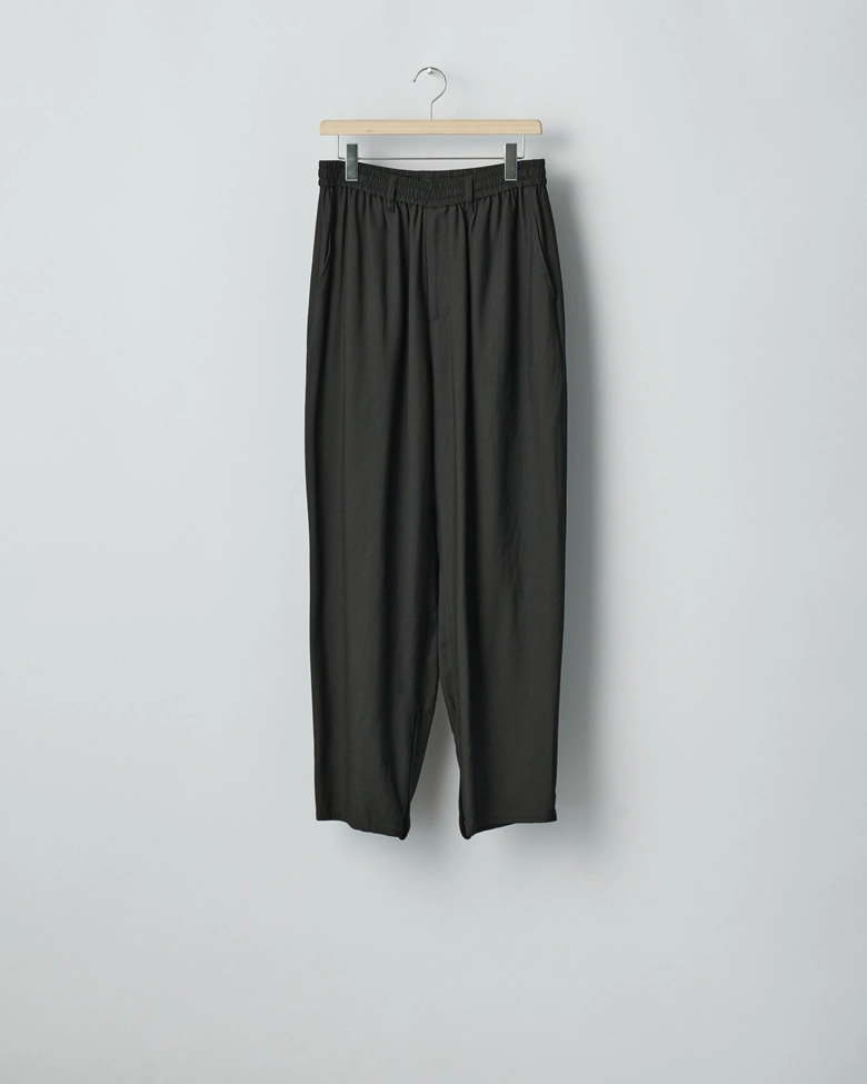 本イベント用に制作したカプセルコレクションは、改めてブランドのキーカラーである“黒”にフォーカスし、イタリアの「COLLEZIONI BIELLESI(コレッツィオーニビエレッシ)」社のリネン素材や、新しく作ったレーヨンシルクの素材など、ブランドスタート時より展開し続けているブラックの表現をまた新しいカタチでアプローチをかけ、テキスタイルから用意したコレクションとなっている。