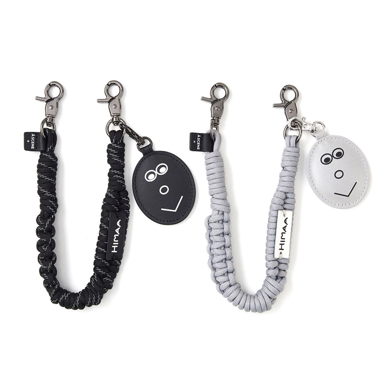リフレクターを散りばめたパラコードを編み込んだストラップ。シンプルながらもHIMAAらしいモードなデザインで、取り外し可能なSMILEチャームが付属する。
