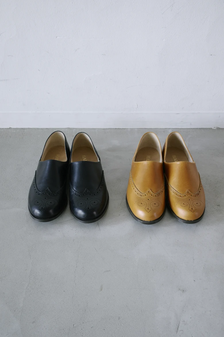 ・ウィングチップデザインを取り入れた新型。トウにはメダリオンを施し、オイルドレザーの自然な風合いとクラシカルな雰囲気を兼ね備えた一足。