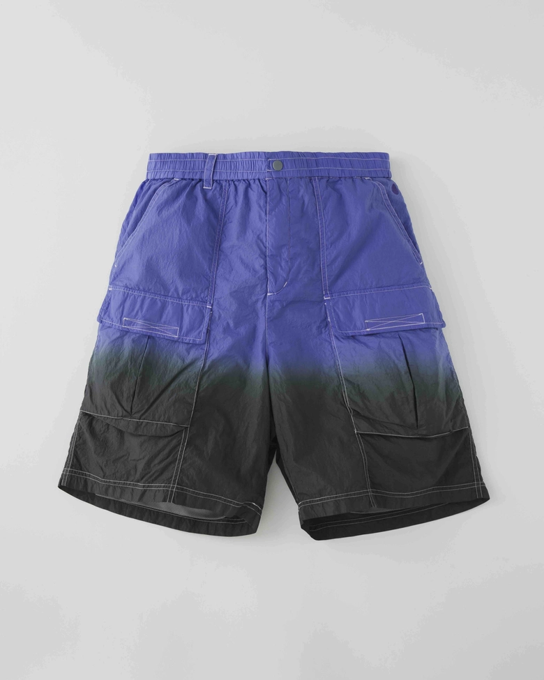 特徴:ナイロン素材を使用し、ジャケットと同様にガーメントダイを施したショーツ。手染めによる個体差が魅力。