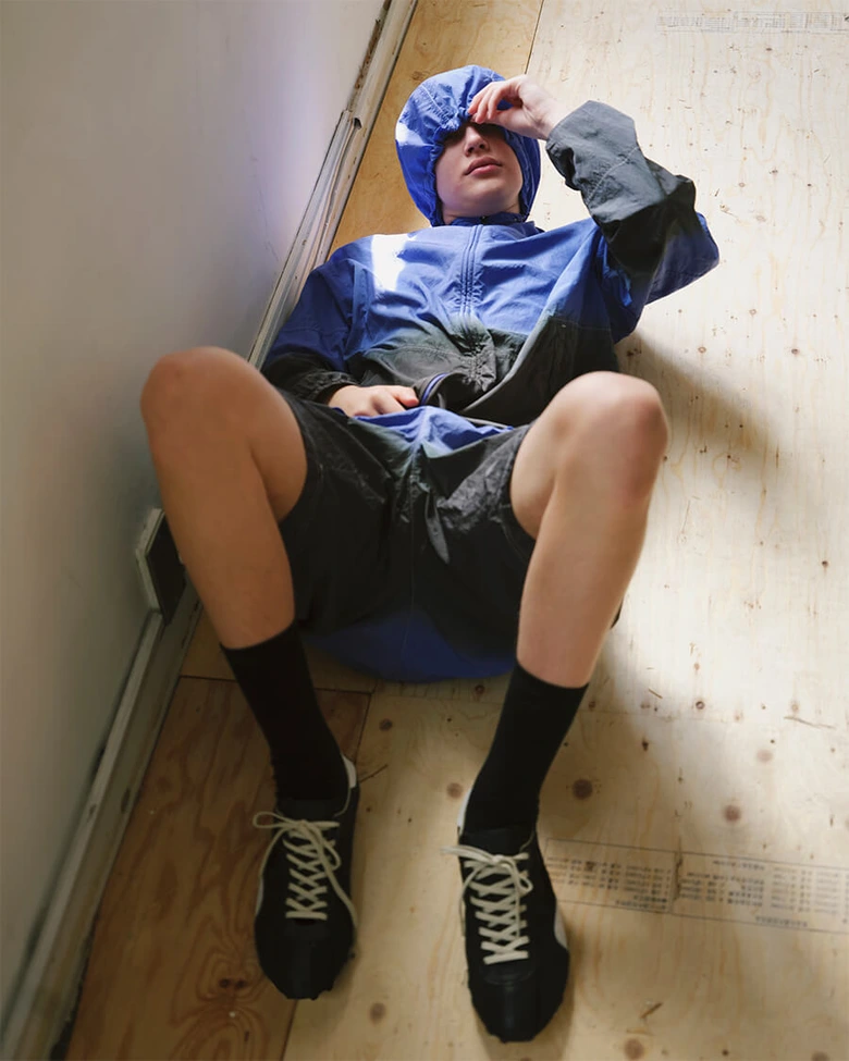 ライトウェイトなナイロン素材を使用し、PURPLEからGRAYへとグラデーションで製品染めを施した特別なアイテムだ。通常、COVERCHORDではWOMENSサイズのみの取り扱いだが、今回はMENSサイズも展開される。