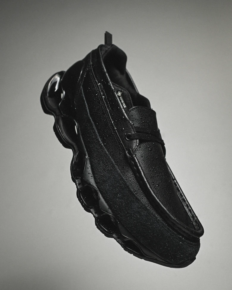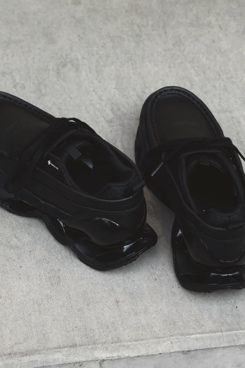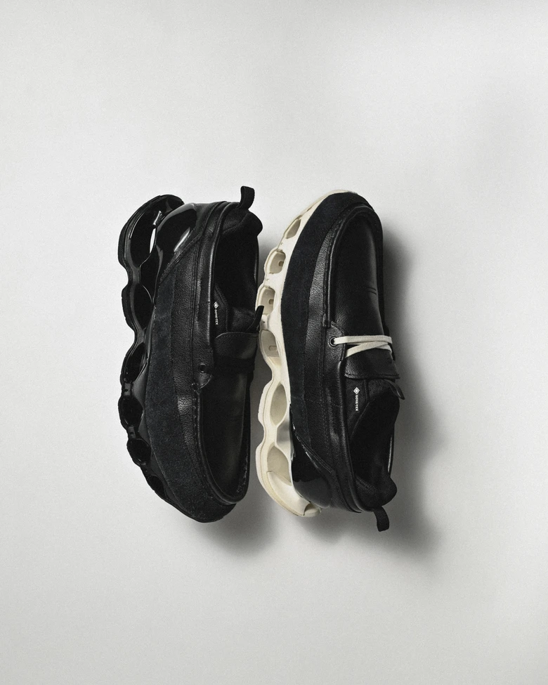 今モデルでは『GORE-TEXテクノロジー』を採用し、防水透湿性を備えたスペックへとアップデート。フルブラックとブラック×オフホワイトの2色展開となり、どちらのカラーにもリフレクティブアクセントのコードシューレースとレースロックが付属する。