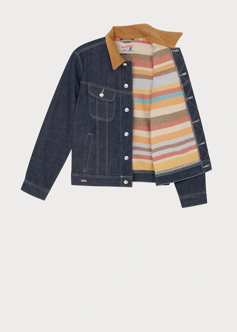 このコレクションは、ポール・スミスのシグネチャーストライプと、サー・ポール・スミスの言葉「Look & See(目を凝らしてよく見て)」からインスピレーションを得たデザインが特徴だ。ジーンズやデニムジャケット、ウエスタンシャツ、シャツなど、多彩なアイテムがラインナップされている。
