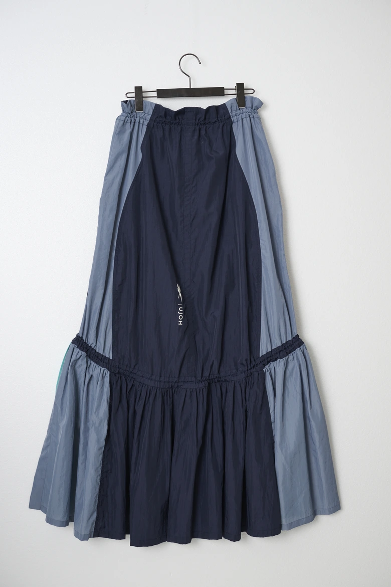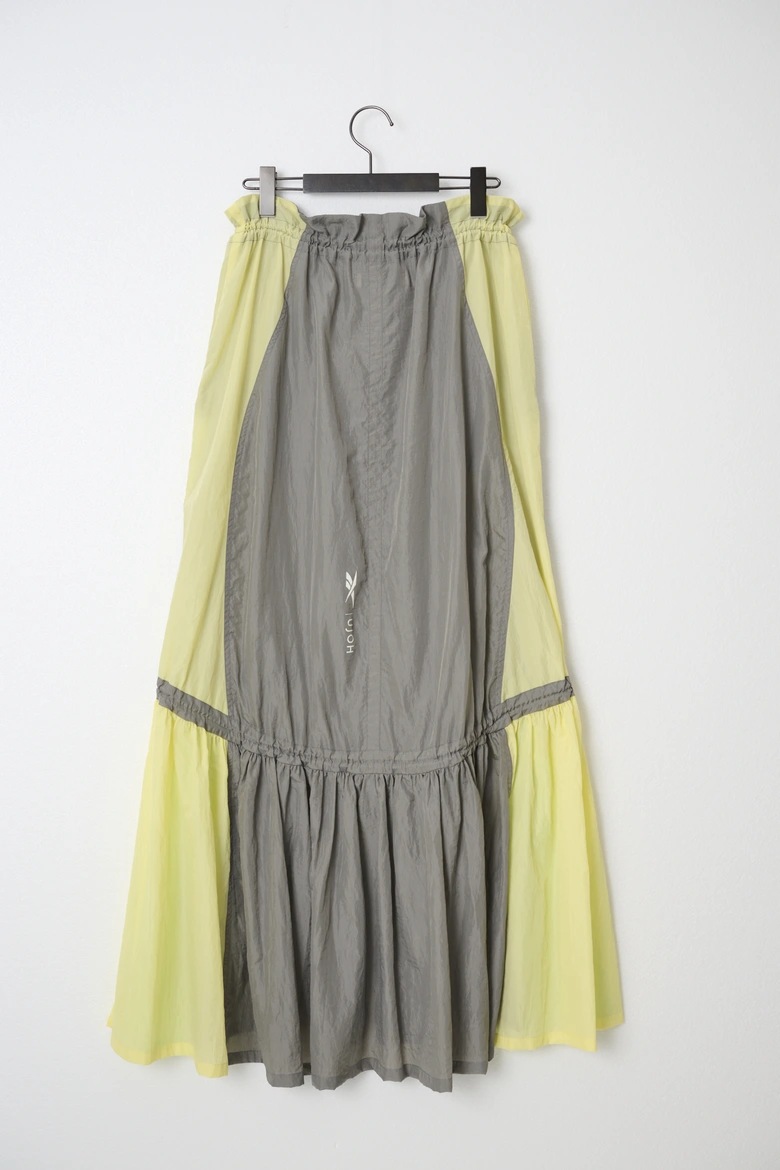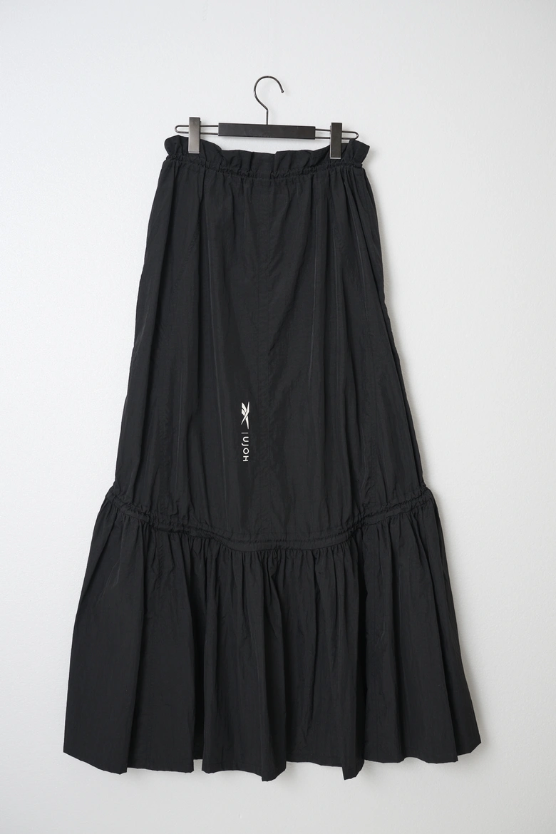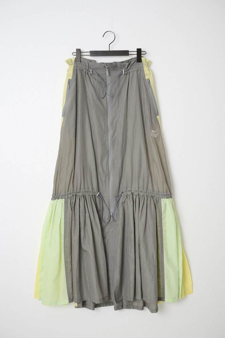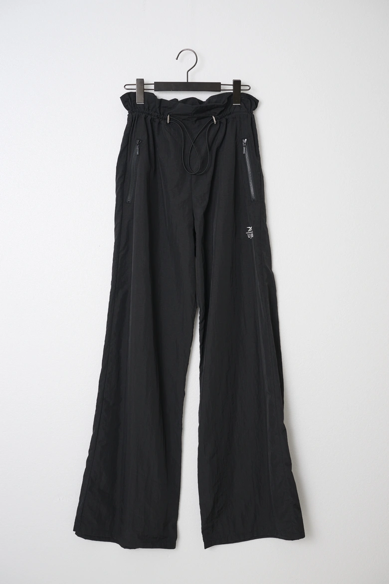 今回のコレクションでは、軽量かつ撥水性のあるナイロンワッシャー素材を採用。<UJOH>ならではの立体的なパターンや贅沢な布使い、ブランドのアイコニックなディテールであるドローコードなどが、アクティブウェアの要素と融合し、新たなスタイルを生み出している。