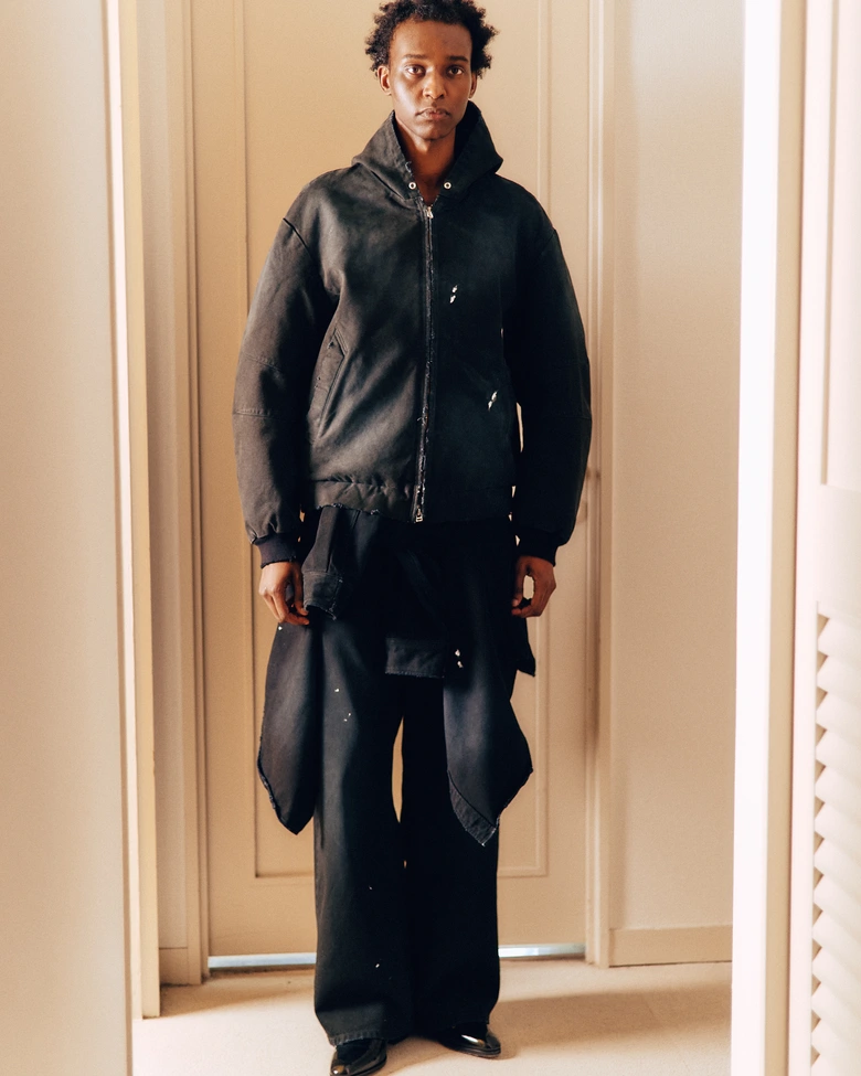 いずれのアイテムもややオーバーサイズなシルエットで、体型を選ばずフィットし、ハードな加工ながらも洗練された印象を与えるデザインとなっている。