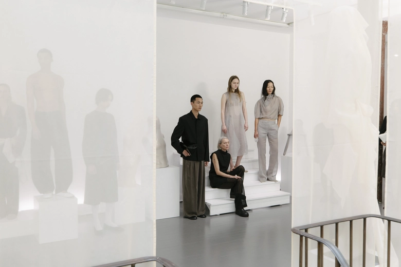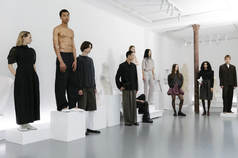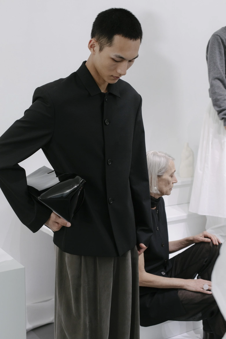 <AMOMENTO>の25SSコレクションは、「AMOMENTO ARCHIVE COLLECTION」というシーズンコンセプトのもと、ブランドの歴史とアイコニックなデザインを現代的に再解釈している。アート作品を包み込むさまざまな手法からインスパイアされたこのコレクションは、シーズンの素材とディテールを通じてそのメッセージを表現している。ストレートラインのテーラリングに焦点を当て、クラシックな魅力を引き立てつつ、<AMOMENTO>独自のカーブラインが現代的でミニマルなシルエットを生み出している。