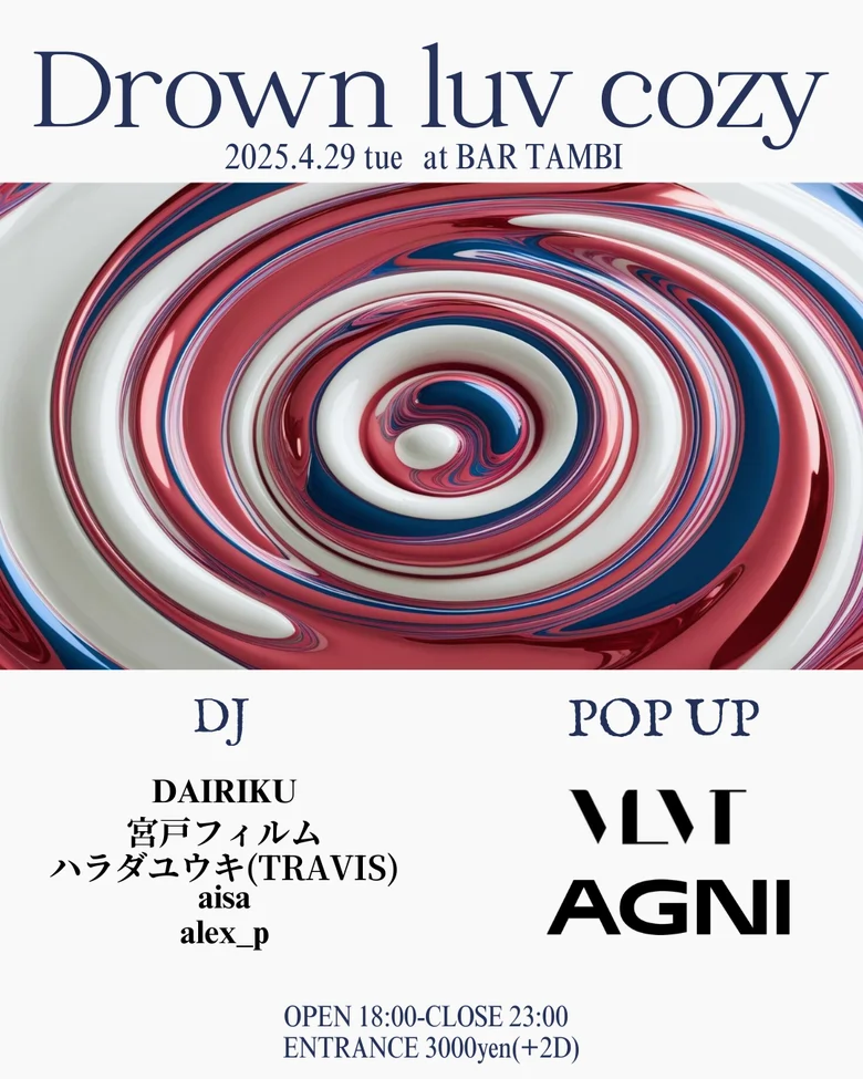 映画とファッションが交差するDJイベント「Drown luv cozy」、4/29(火)恵比寿にて開催