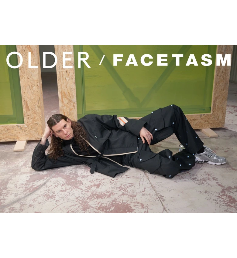 このコラボレーションは、革新と職人技という共通のビジョンから生まれ、東京のストリートウェアのエネルギーと、OLDERのシンプルで洗練されたデザインが融合したコレクションである。<FACETASM>特有のボリューム感と個性的なデザインが、OLDERの精密な仕立てや、持続可能な生産への取り組みと合わさり、ファッション、建築デザイン、ワークウェアの要素をつなげた新しいスタイルを提案している。