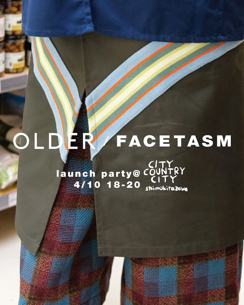 この特別なコラボレーションのローンチを記念して、4月10日(木)に下北沢のカフェ・レコードショップCITY COUNTRY CITY(以下CCC)にてローンチパーティが開催される。このイベントでは、コラボレーションによるOLDER x FACETASMコレクションに加え、OLDERのアーカイブアイテムも特別に展示し、両ブランドの世界観を味わえる。当日は、展示コレクションを拝見するだけでなく、OLDERと<FACETASM>のチームとの交流や、CCCとOLDER Studio共同創設者Morten Thuesenによる特別なプレイリストを楽しむことができる。誰でも入場可能となっており、詳しくは FACETASMの公式Instagram(@facetasmtokyo)にて確認することができる。