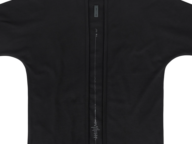 注目の「EXCLUSIVE DALMA T-SHIRT」は、火山学や地質学といった科学分野に着想を得たグラフィックを背面にプリントし、ユニークな構造美が光る1枚。ネックバインダーを背中の裾まで延長し、背中心で切り替えるディテールや、ブランドネームを表に出せるネックスリットなど、<_J.L - A.L_>らしい実験的なデザインが詰まっている。