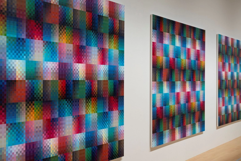 本展では、2024年より制作している綴織(つづれおり)をモチーフにした《CUT》シリーズの新作を15点と、万博会場に収めた作品の一部を試作したものを展示する。また、本展に合わせてこれまでの活動をまとめた作品集を刊行するとともに、エディション作品付きの特別限定版も販売。現在ポーラ美術館で開催中の展覧会「カラーズ ― 色の秘密にせまる 印象派から現代アートへ」に出展している作品を版画にしたものとなる。