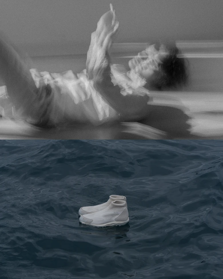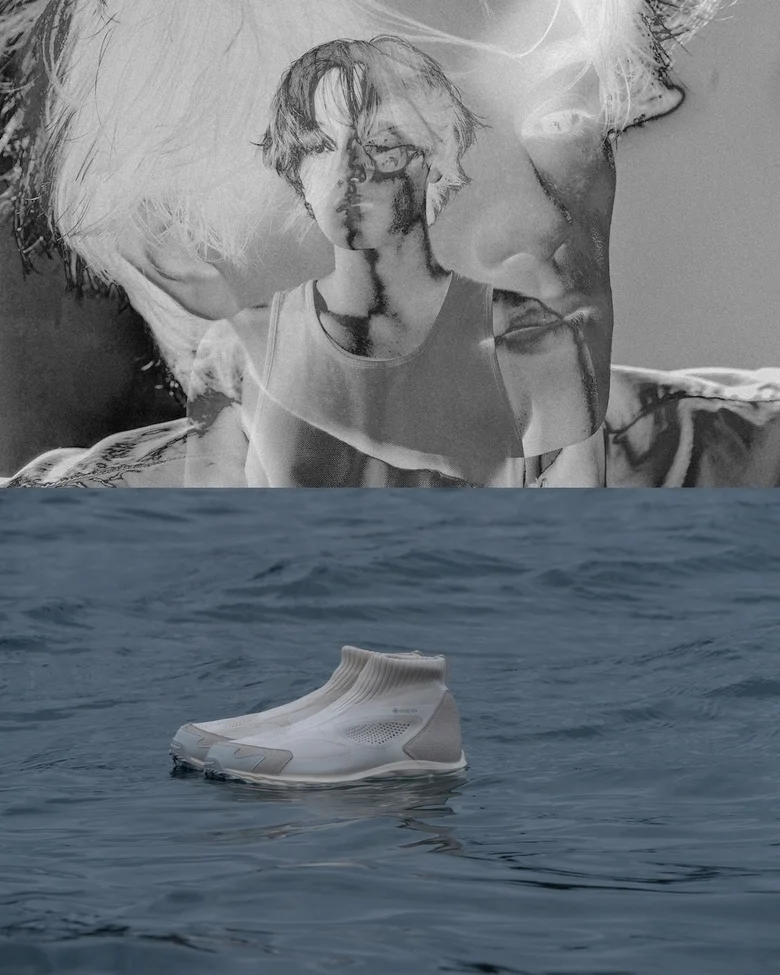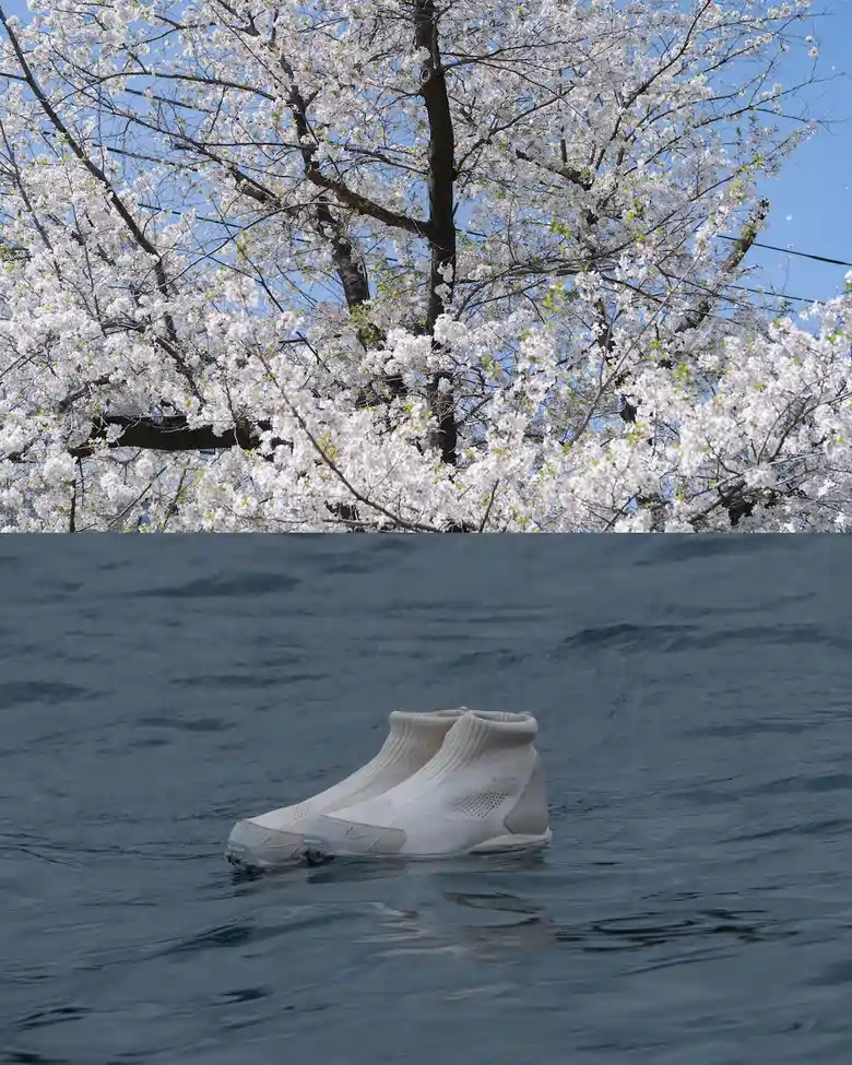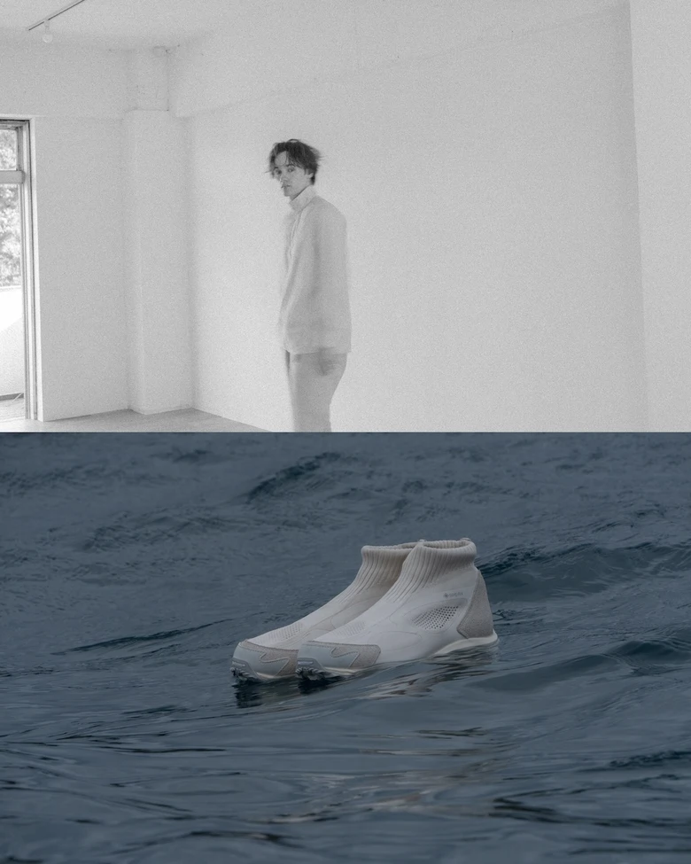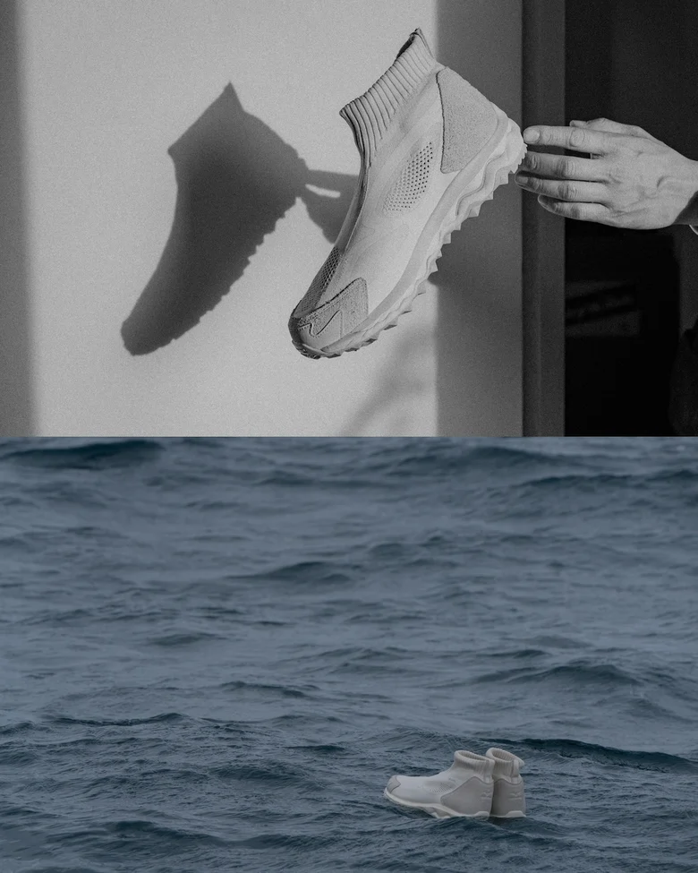 今回の“OFF WHITE”は、<nonnative(ノンネイティブ)>との5度目のコラボレーション。レザーブーツを想起させるシルエットを、ニット素材で具現化したユニークなデザインはそのままに、爽やかな春カラーでアップデートされている。ややクリームがかったホワイトのメッシュアッパーに、ライトグレーのスウェードとアウトソールがアクセントを加え、同ブランドが今季展開するIVORYやSAX BLUEのウェアとも好相性だ。