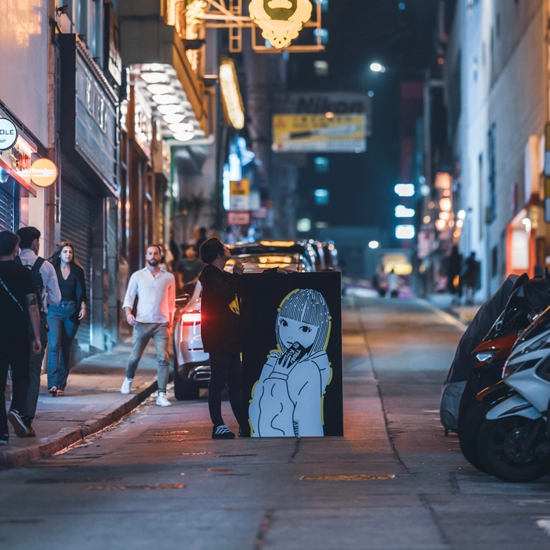 本展は、その画集の刊行を記念して開催されるもので、原画やドローイングの展示に加え、サイン会やトークイベントも予定されている。「SELFY」は、SNS時代における“現代の肖像画”としての新たな在り方を提示するアートシリーズである。SNSが日常に溶け込んだ現代において、私たちの「自己」は、他者からの視線や承認を前提として構築される存在へと変貌した。セルフィー(自撮り)は、理想化された自己を演出し、他者からの評価によって自己を確認するという現代的な行為の象徴とも言える。