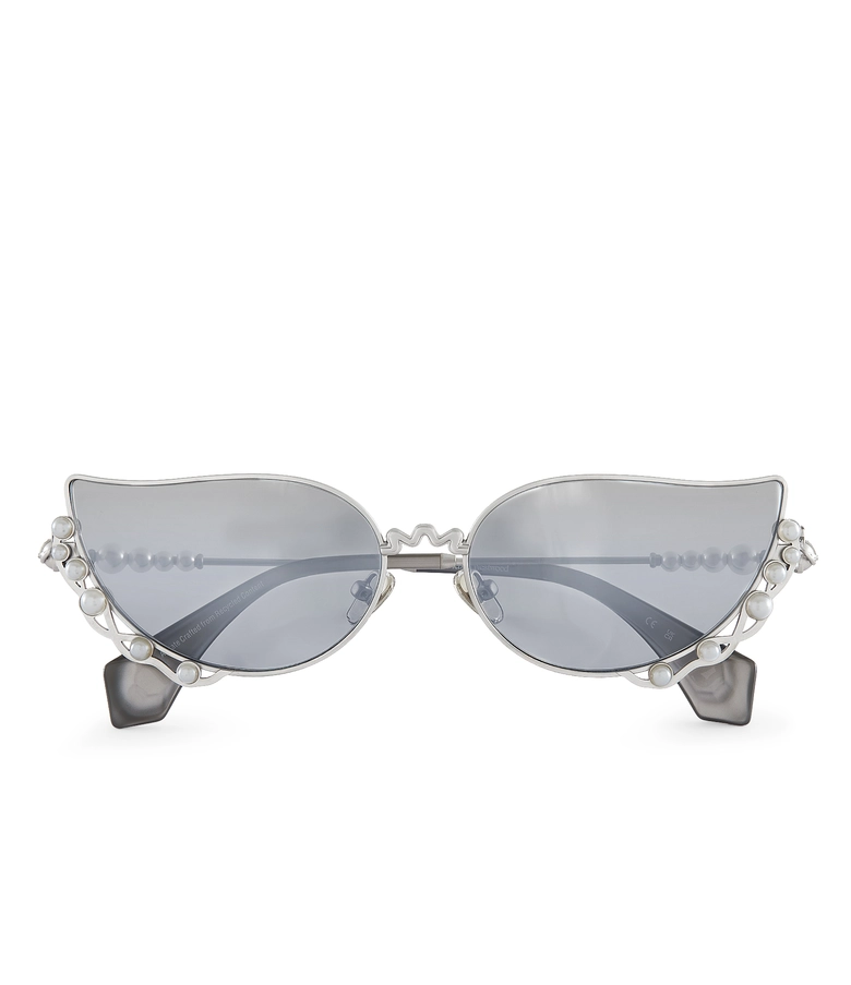 メタルフレームやヒンジには特別なディテールが施されており、ブランドを象徴するパール装飾がフレームにあしらわれている。<Vivienne Westwood>のアイコンであるORB(オーブ)は、ヒンジに立体的に、またはメタルフレームにエンボス加工で表現され、細部にまでこだわりが詰まっている。
