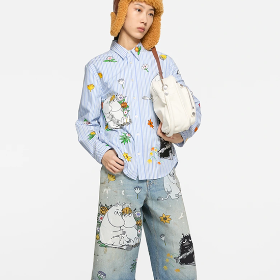 Tove Janssonの理想郷的なビジョンに共感し続けてきた<Acne Studios>は、2024年11月にムーミンと初めてコラボレーションを行った。1930年代後半に誕生したMoominsは、1945年に『The Moomins and the Great Flood小さなトロールと大きな洪水(小さなトロールと大きな洪水)』としてスウェーデン語で出版されて以来、60か国以上の言語に翻訳され、テレビシリーズや映画化もされているなど、平和、寛容、友情といった価値観を体現する存在として世界中で愛され続けている。
