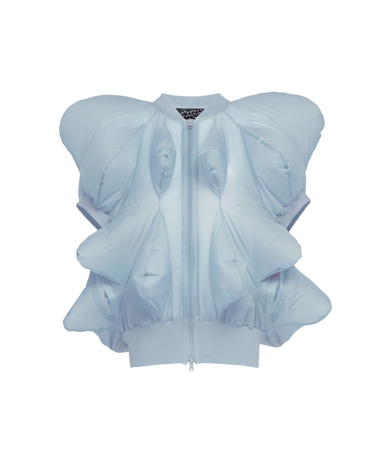 そのほか、目に見えない風の力を可視化して新たなシルエットを作り、ますます過酷になる日本や世界各地の暑い夏に対して、テクノロジーを駆使し、遊び心あふれる“クールウェア”のワードローブを日本のファン付きウェアの先駆者である『空調服』コラボレーションして提案した、2025年春夏コレクション「WIND」。ボールの立体に着せ付けられるアイテムは身体に添うことで、規則的だった形が、自然なドレープとなり、ボリュームのあるシルエットに変換され身体とはかけ離れたモチーフからつくることで、ジェンダーレスな提案ができる球体シリーズ。拡大されたウエストの余り部分をラッピングすることで特徴的なシルエットになり、ラッピング部分をウエストベルトで調整しシルエットに変化を与えられるラップシリーズといったブランドの定番アイテムに加え、メンズライン<anrealage homme(アンリアレイジ・オム)>のアイテムも幅広く展開される。