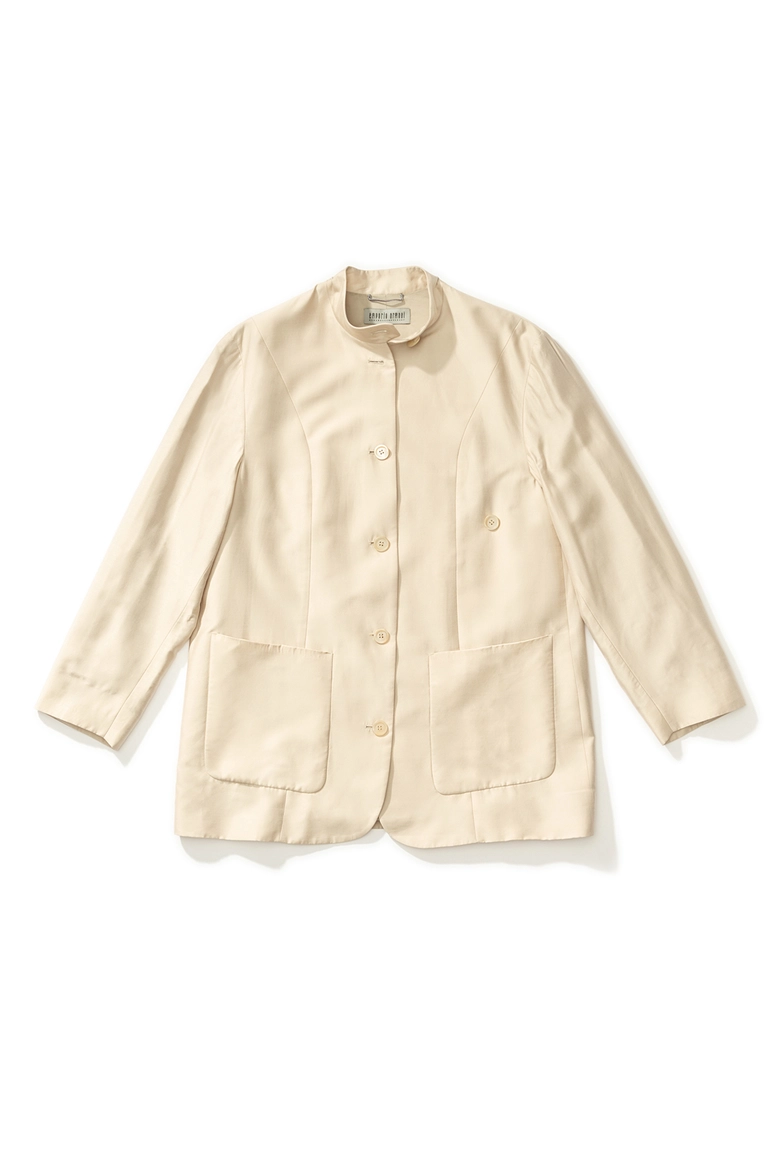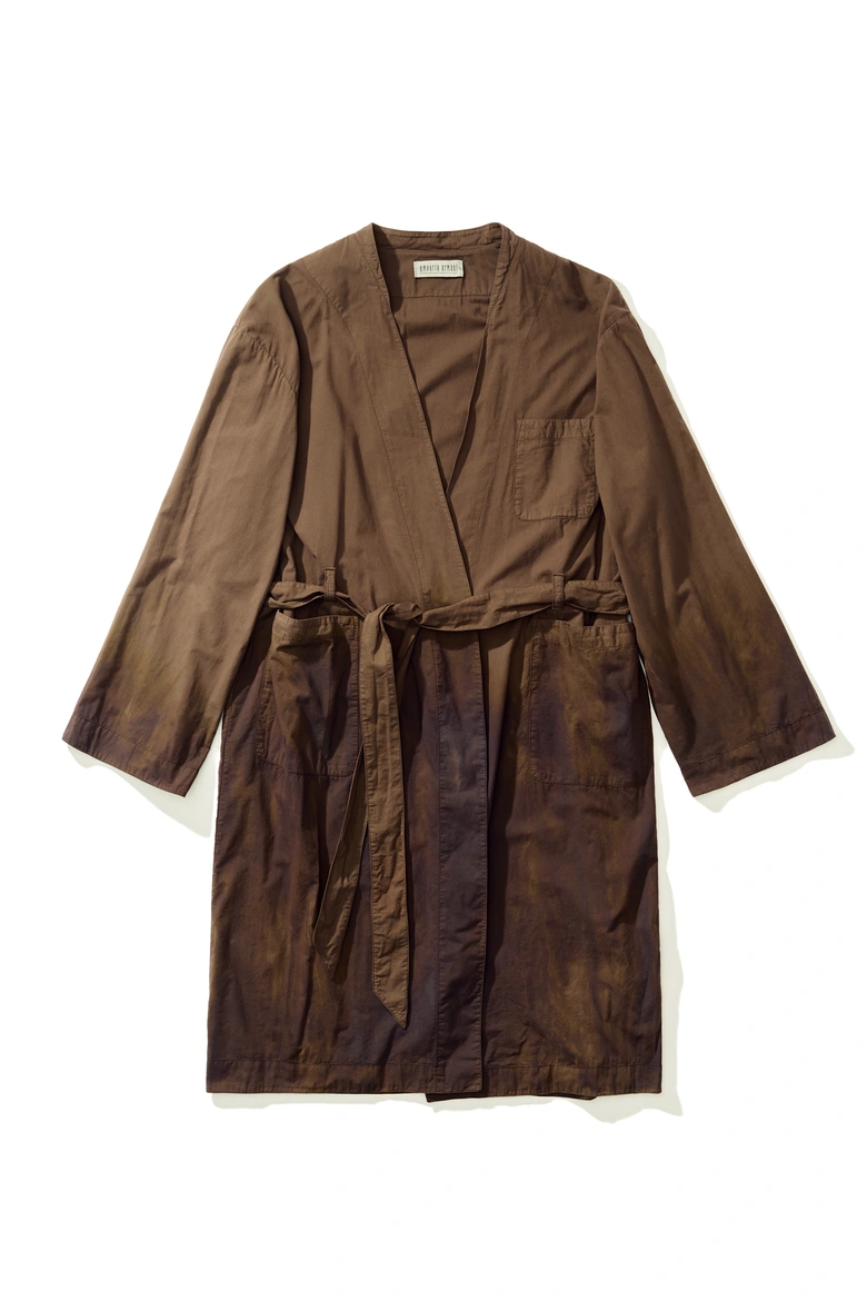 東アジアの伝統的な衣服からのインスピレーションが随所に見られる。襟のない「Sciovolo Shirt」や、「Ampolla Blazer」のポケットの裏地に用いられたモチーフなどがその一例。なかでも「Toga Coat」は、和装の構造に着想を得たローブで、デザインプロセスの出発点として重要な役割を果たしている。また、ホテルのバスローブやスリッパから着想を得たアイテムは、夏のリゾートスタイルを思わせる、ゆったりとした陽だまりのようなリラクシングなムードを演出している。