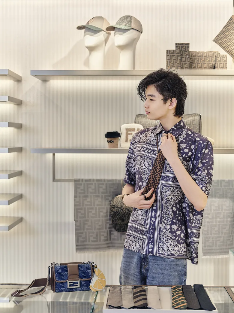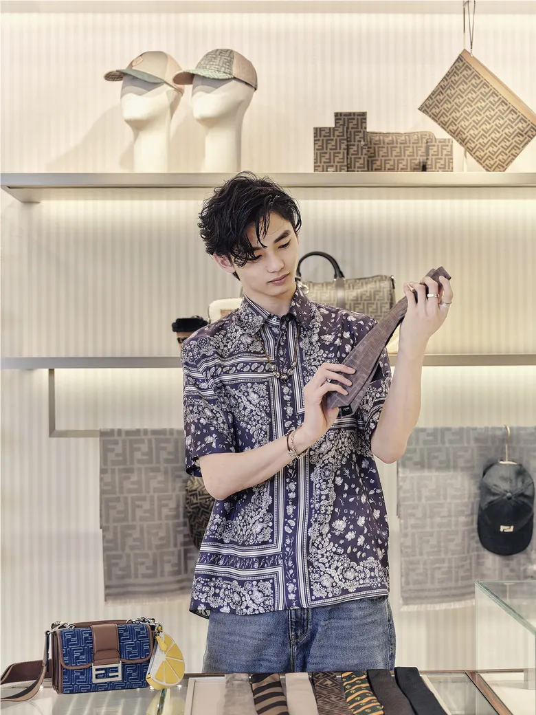 本ムービーでは、特別な日に贈るメンズギフトセレクションを紹介している。今回、パラッツォ フェンディ 表参道店に訪れた冨永章胤さんは、<FENDI>2025年サマーコレクションより、バンダナ柄がプリントされた夏らしいブルーのシャツを着用。さらに、ブルーデニム風の「FF」ロゴジャカードでアップデートされた「ダブル バゲット(Double Baguette)」バッグにレモン型のチャームをあしらい、遊び心あふれる若々しいスタイルを完成させた。