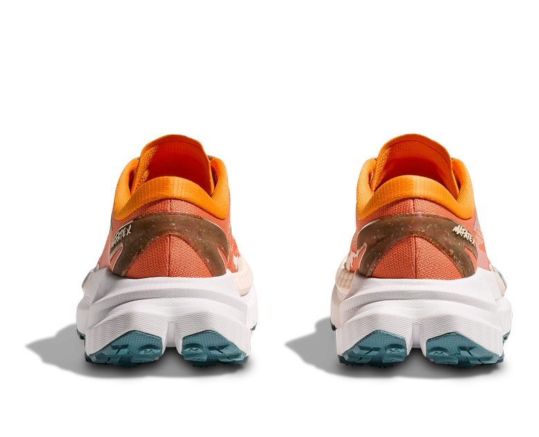 ウルトラソフトなデュアルレイヤーミッドソール:スーパークリティカルEVAソールとPEBAトップレイヤーの2層構造により、長距離走行での足への負担を軽減し、快適な走りを提供。フォーク型カーボンファイバープレートは、長距離でも安定した走りを可能にし、ユニークなフォーク状のデザインが、凸凹の多いトレイルでも足元のブレを軽減する。メタロッカーと後足部にフォーカスしたアクティブフットフレームは、HOKAのロードランニングモデルSKYWARD Xにインスパイアされ、ウルトラトレイル競技で必要とされる安定性を備え、適度なペースを維持できるようをサポート。ダイナミックバンプとガセットタンにより、足にしっかりとフィット。