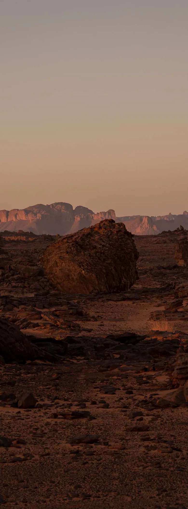本展は、2023年2月から約1か月にわたり、アルジェリアのオアシスであるジャネットをスタート地点としたサハラ砂漠にて撮影。トゥアレグ族と共に砂漠を彷徨い、生活をしながら撮影した、大判を中心とした写真群約20点と、研究機関と一緒に制作した温度で写真が浮かび上がる特別仕様の作品1点を展示される。