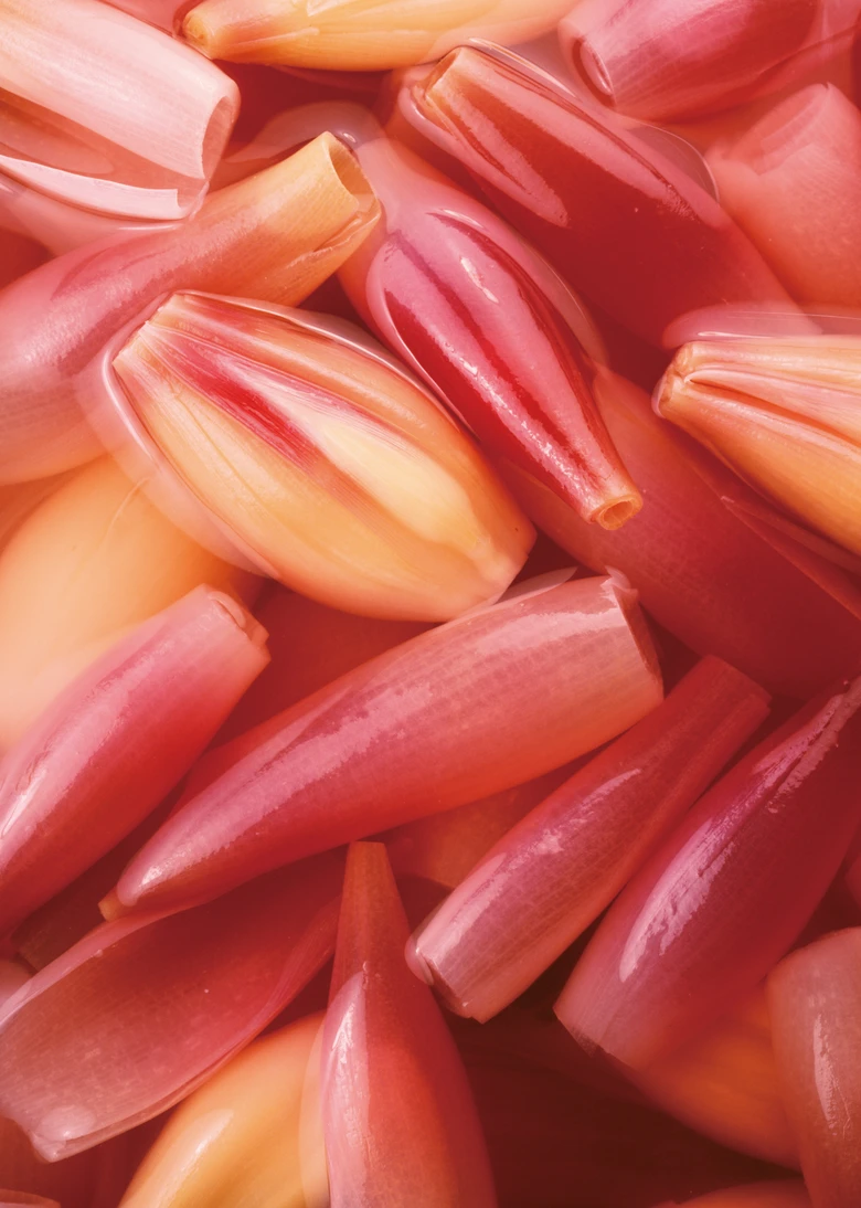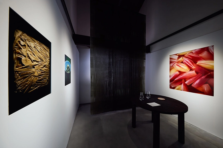 会場では、『百味菜々』に収められた写真をはじめ、だしや野菜の香り・音・映像などを通じて、「昆布」を想起させる「ほぐし絣(がすり)」によるインスタレーションが展開される。視覚だけでなく嗅覚や聴覚など、身体感覚に訴える空間演出により、訪れる人に生命の源である水の存在を深く印象づける。