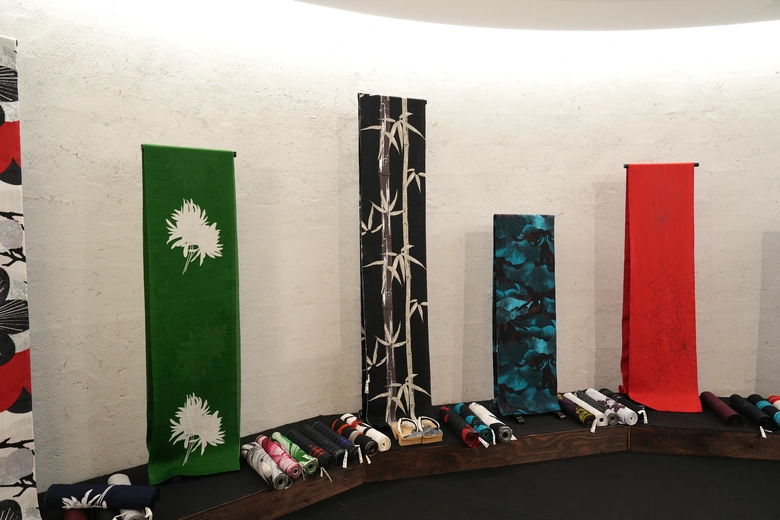 新作を含む誉田屋源兵衛の浴衣をフルラインアップで展示される。