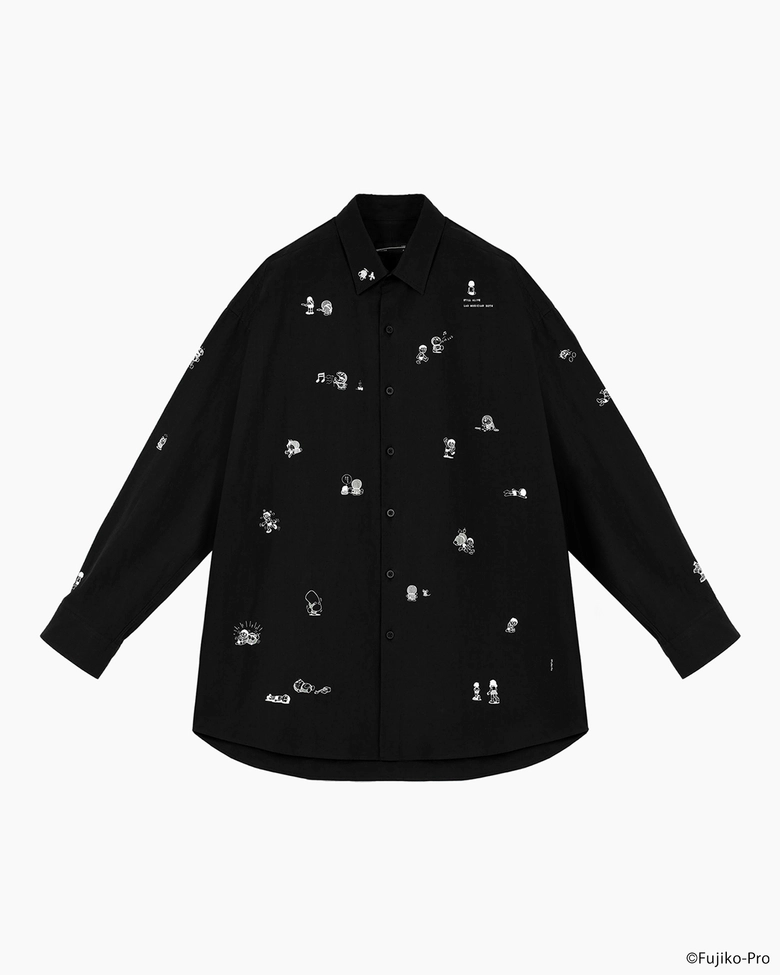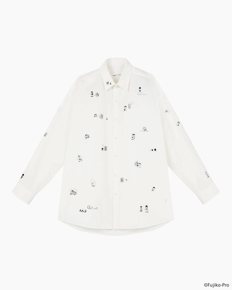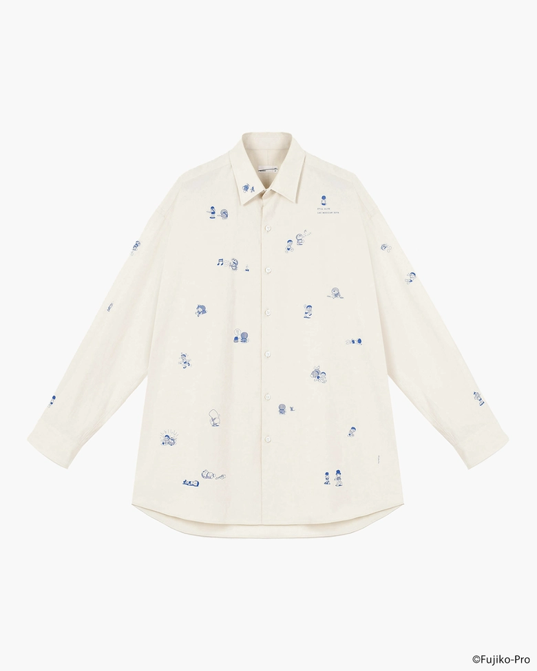 本コレクションでは、『ドラえもん』全ストーリーの中からセレクトした不条理な28コマのカットをフロントのボディーや衿、袖にランダムに配置し、バッグは背中にギャザーを寄せ丸みを持たせたリラックス感のある総柄ビッグシルエットシャツ、ドラえもんが奏でるギターのノイズ音を稲妻やロゴで表現し、ワンポイントの刺繍でさりげなく施したポロシャツや、今回のスペシャルコレクションでアイコンとなったシューゲイザー風のドラえもんとのび太をフロントとバックに近未来からのメッセージをレトロなコンピューターコードのフォントを再現し、ワードデザインで載せたTシャツ、トートバッグカラーを反転したダーク感のあるキーリングなど全8アイテムが展開される。