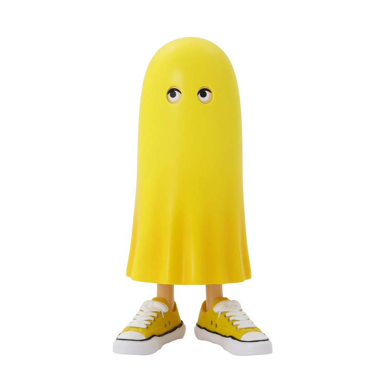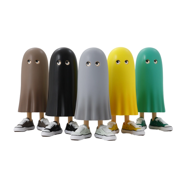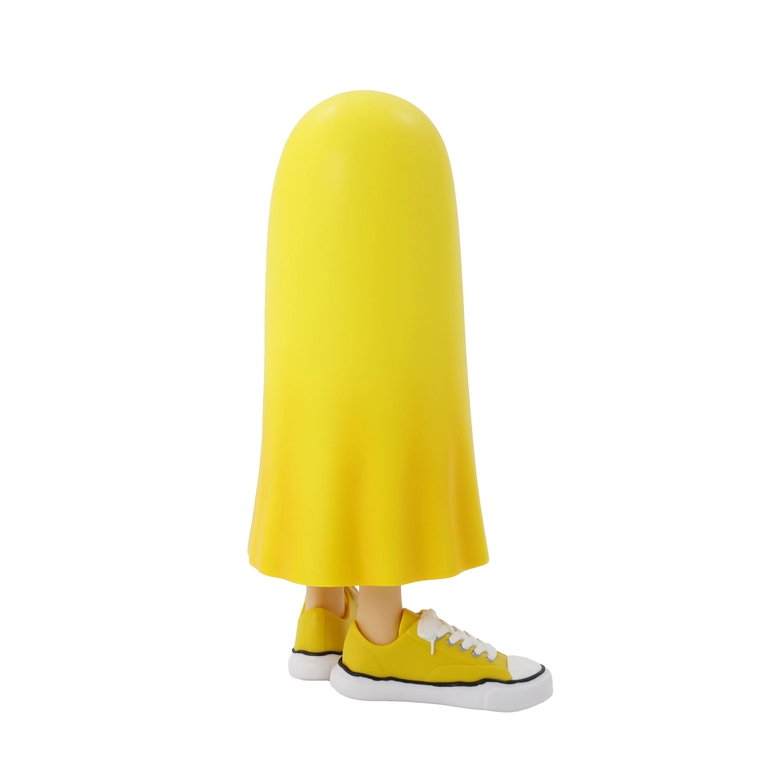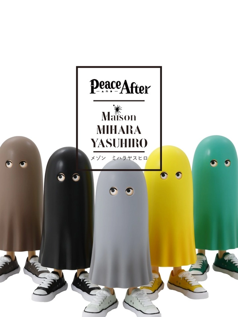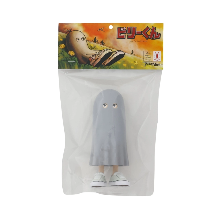 2022年に誕生したビリー君。「照れ屋のビリー君。外に出る時に服がないことに気づいたので、シーツをかぶりました。スニーカーが大好きなビリー君は、オリジナルソールスニーカーを履いて出かけます。」そんなユニークな背景を持つビリー君が、今回初となるコラボレーションでフィギュア化され、特徴的なアンニュイな目元や、ふわりと揺れるシーツの質感、そして足元には<Maison MIHARA YASUHIRO>の代名詞とも言えるオリジナルソールスニーカーが、ソフビとして細部まで忠実に再現されている。フィギュア本体は、コレクター心をくすぐるユーモアあふれる専用パッケージ入り。<Peace and After>と<Maison MIHARA YASUHIRO>、両ブランドのロゴがあしらわれ、コラボレーションを象徴する仕上がりとなっている。