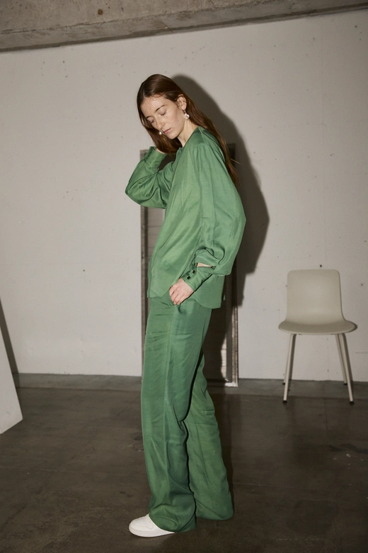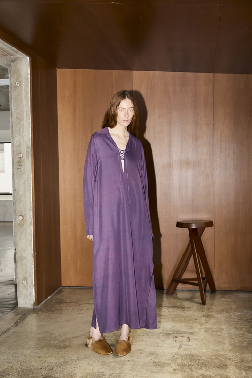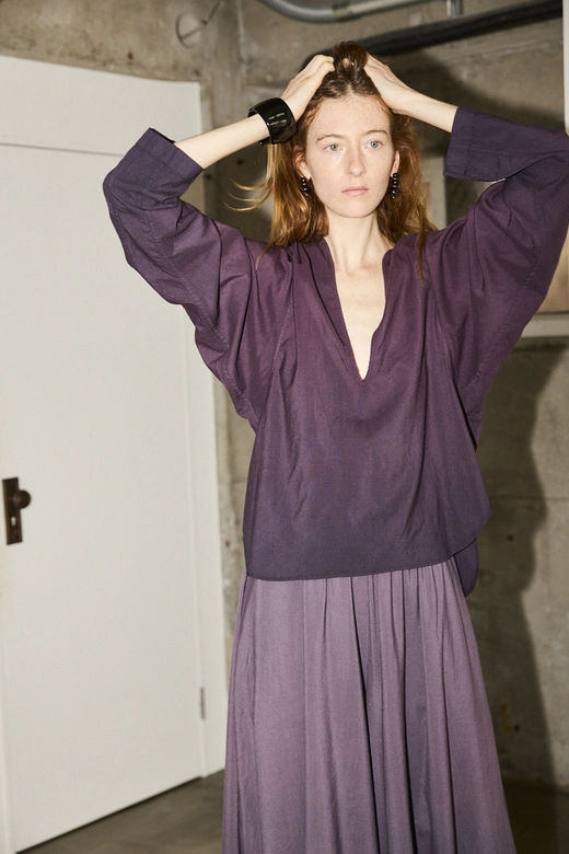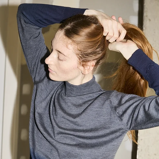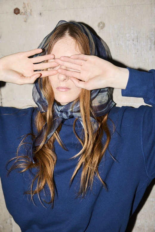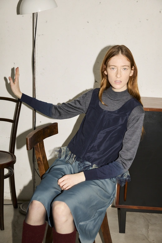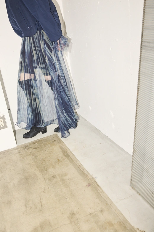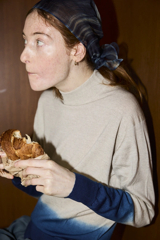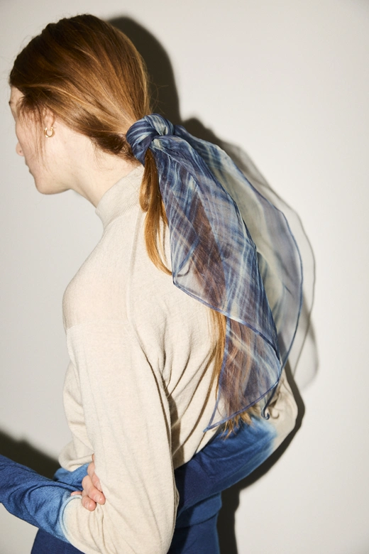本コレクションでは、<JOHN SMEDLEY>の人気モックネックモデル「AMITY」をベースに、<ŌME>ならではの藍によるグラデーション染めを施されている。クラシックなソリッドカラーとは一線を画す、奥行きのある風合いが見どころである。