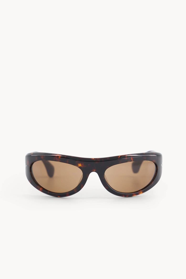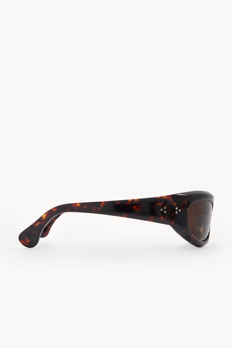 1990年代から2000年代初頭のアクションスポーツに着想を得た、スポーツ由来のオーバルフレーム。建築的なシルエットが特徴。