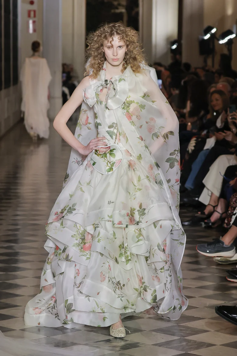 このショーでは、メイド・トゥ・オーダーおよびクチュールのブライダルコレクションより、全35ルックが登場。オレンジの花が咲き誇る中庭を背景に、一着ごとに異なる物語が紡がれた。