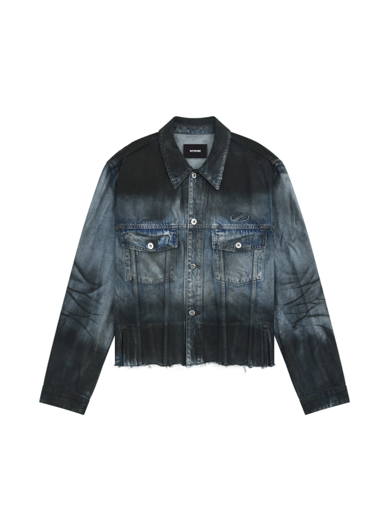 BLUE DARK-SPRAY DETAIL DENIM JACKET