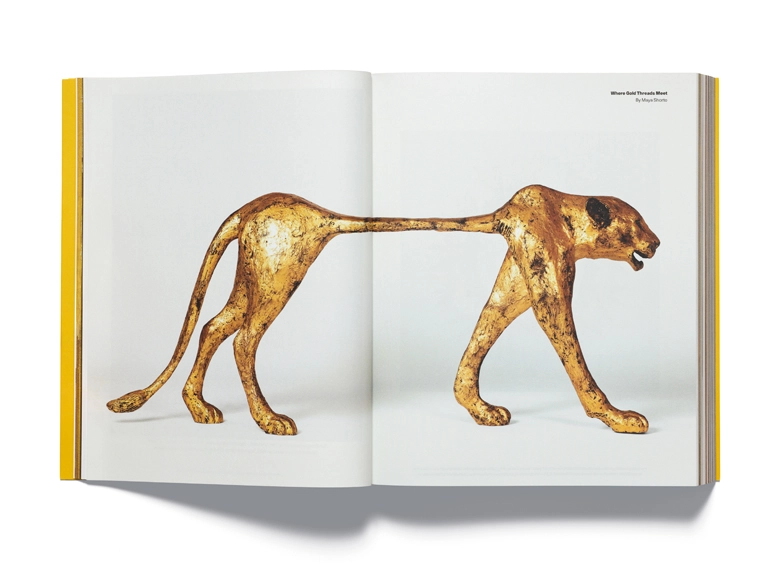 本特集号では、ファッションストーリー、エッセイ、インタビュー、アートポートフォリオなどを通じて、「Golden」に内在する光と希望、神聖さと人間味を映し出している。金という色彩と物質そのものが、本誌の全編を通して詩的かつ学術的に横断し、時代の不確かさに光を灯すようなコンテンツが構成されている。