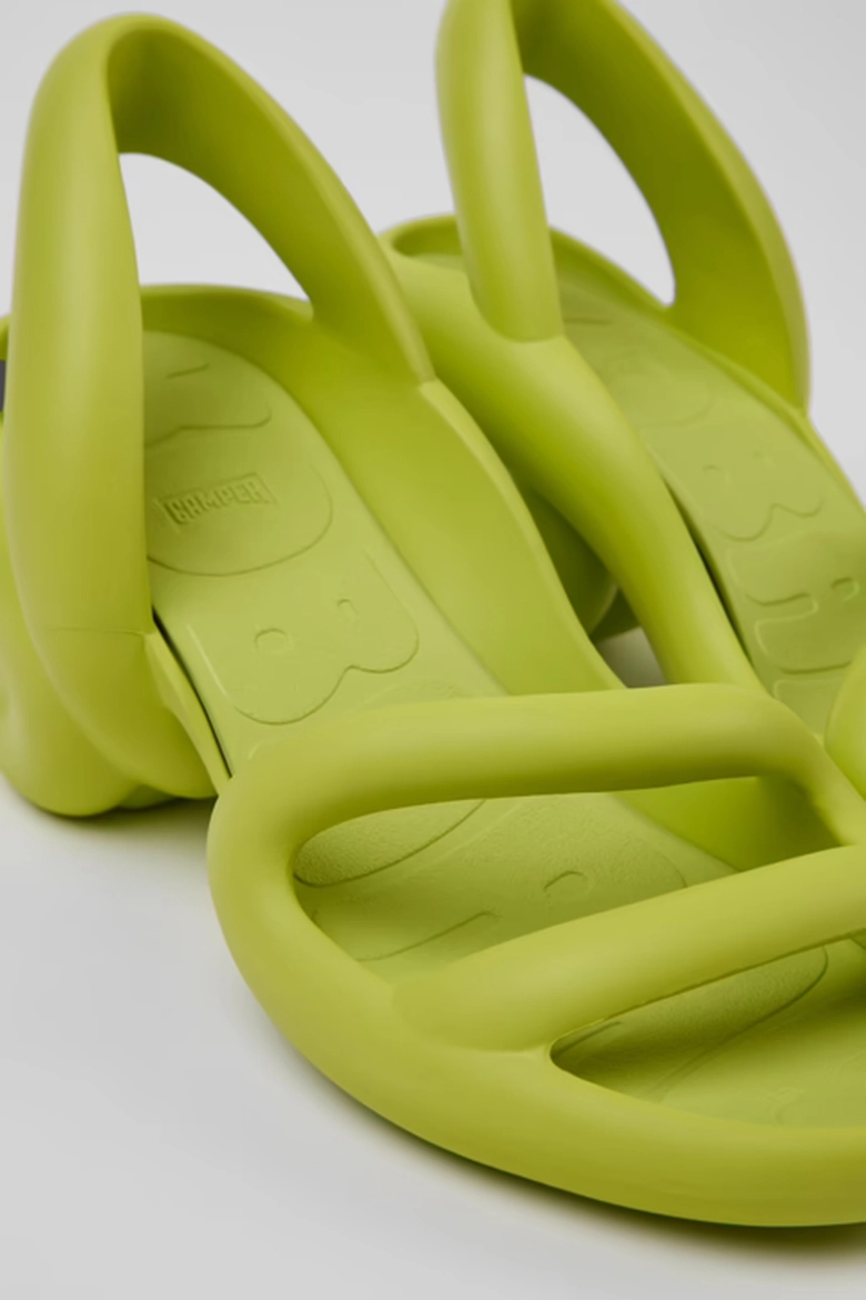 近年カンペールを代表する究極のサーキュラーデザインKOBARAHシリーズ。シンプルなボリューム感に独創性と遊び心があふれたサンダル。快適でクッション性のあるアウトソールは非常に軽く、丸みを帯びたボリュームで足を包み込み、ユニークなシルエットを作り出している。サーキュラーエコノミー(循環型経済)のコンセプトに基づいたこのサンダルは、バイオベースの原料を30%含むEVAを用いて、単一素材でできているので完全なリサイクルが可能である。シューズの寿命を終えたとき、簡単に分解して新しい素材や製品にリサイクルできるので、廃棄物の発生を防ぐことができる。