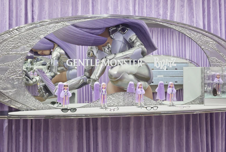 今回のポップアップは、巨大なBratzオブジェと<Bratz × Gentle Monster>ドールが演出する非現実的な空間を通じて、自己の限界を超えるような超感覚的な体験を提供。2025 Pocket Collectionの大胆なデザインと融合し、多層的なブランドの世界観を表現している。