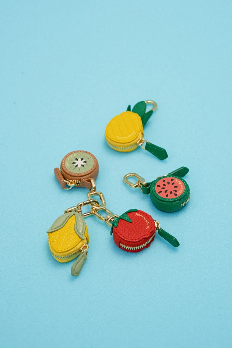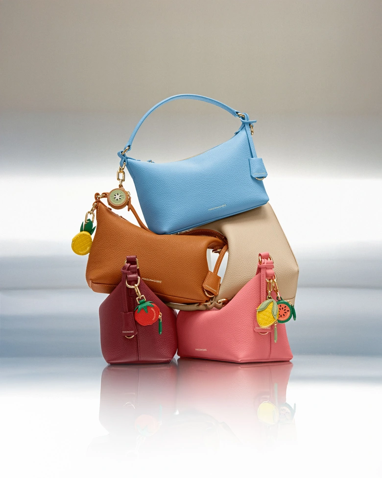 本ポップアップでは、ブランドを象徴するバッグやチャーム、レザーアクセサリーなど、フルラインナップで展開される。ベストセラーであり世界中にファンの多い“SABRÉMOJI™ チャーム”は、バッグや鍵、洋服にさっとクリップひとつ取り付けられるAirTagチャームで、グレインレザーをアップサイクルして作られている。フルーツやキャラクターなど、愛らしいモチーフが並ぶ。